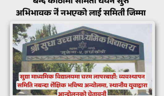 सुद्या माध्यमिक विद्यालयमा चरम लापरबाही: व्यवस्थापन समिति नबन्दा शैक्षिक भविष्य अन्योलमा अर्घाखाँची | शितगंगा- शितगंगा नगरपालिकास्थित सुद्या माध्यमिक विद्यालय यतिबेला गम्भीर प्रशासनिक र शैक्षिक संकटबाट गुज्रिरहेको छ। शिक्षा क्षेत्रमा सुधार, सुशासन र गुणस्तर अभिवृद्धिका नारा देशैभरि घन्किरहेका बेला उक्त...