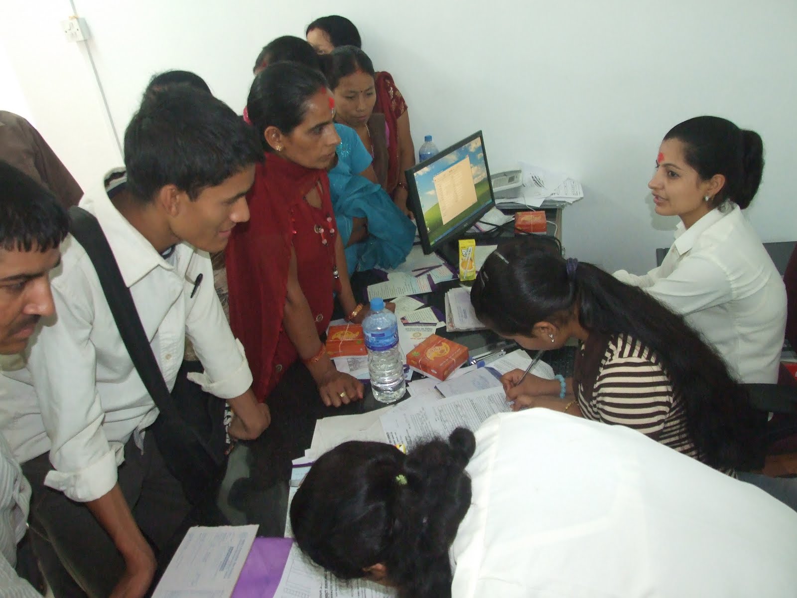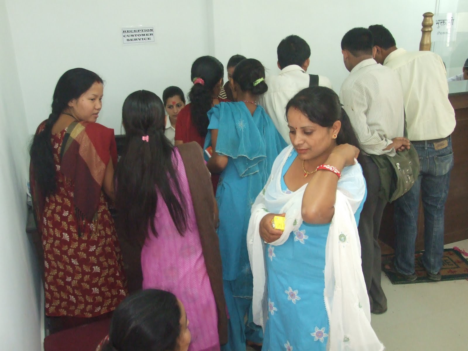 भृकुटी विकास बैकले अर्घाखाँचीको सन्धिखर्कमा आठौ शाखा खोलेकै दिन आईतवार बैकमा खाता खोल्दै ग्राहकहरु।-वीरेन्द्र केसी