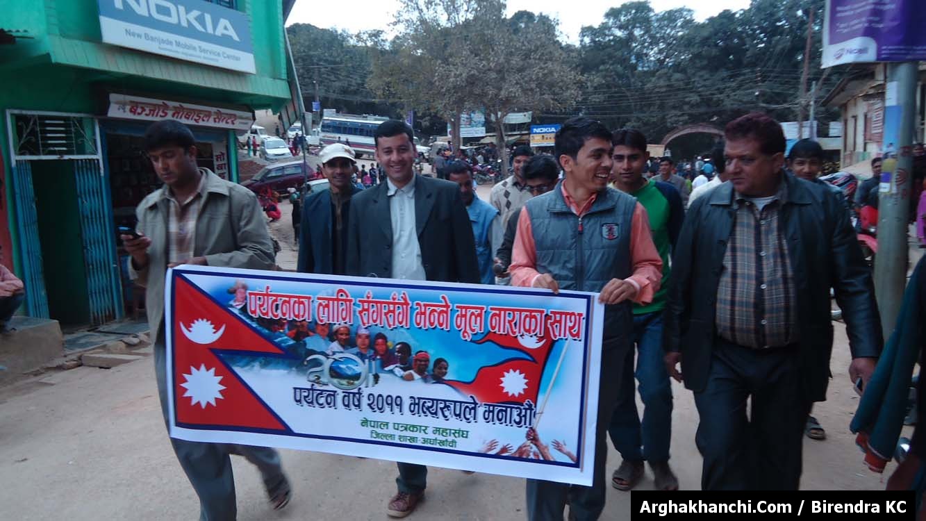 पर्यटन वर्ष २०११ जिल्ला समन्वय समिती र उद्योग बाणिज्य संघ अर्घाखाँचीको संयुक्त आयोजनामा आज याँई-याँईति पाचैबाजा नाच गान विभिन्न झाँकी र हर्षोल्लासका साथ सदरमुकाम सन्धिखर्कमा र् याली सम्पन्न गरिएको छ । सन्धिखर्कको शान्ती बगैचाबाट सुरु भएको र् याली हल लाईन बस पार्क भक्तिटोल चुत्रावेसि शंखेटारी हुदै पुःन शान्ती बगैचामा आई विविध सास्कृतिक कार्यक्रममा परिणत भएको थियो ।