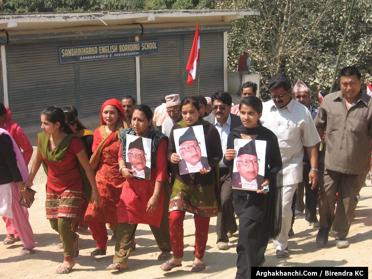 यसअघि नेपाली कांगेसका नेता तथा कार्यकर्ताहरुको मौन जुलुसले सदरमुकाम सन्धिखर्कमा बजार परिक्रममा गरेको थियो ।