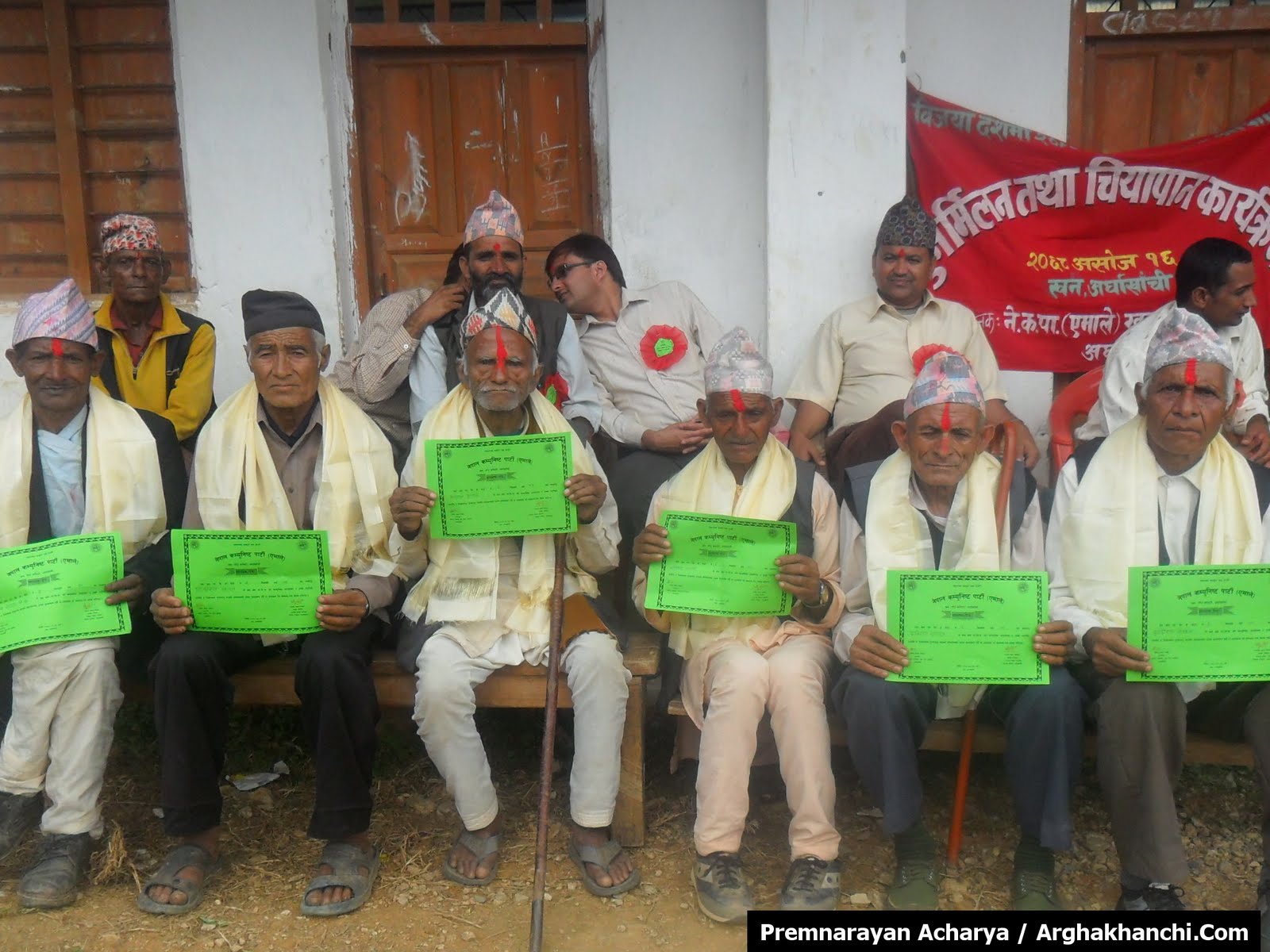 नेकपा एमाले खन गाँउ कमिटी अर्घाखांचीले आयेाजनामा गरेको दशै तिहारको शुभकामना आदान प्रदान पुनर्मिलन तथा चियापान कार्यक्रममा ती बृद्धहरुलाई सम्मान गरिएको हो ।