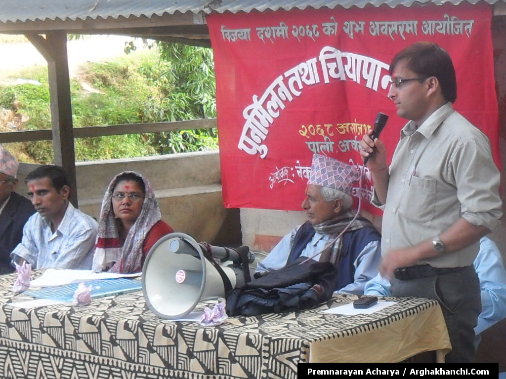 एमाले पाली गाउँ कमिटीका उपाध्यक्ष कौशर अलिको अध्यक्षता र सचिव पदम खनालको संचालन र उपसचिव ऐयापदिन मियांको स्वागत मन्तव्यमा भएको पुनर्मिलन तथा चियापान कार्यक्रममा एमाले भारत प्रवासी नेपाली संघ राज्य कमिटी सदस्य विमल पौडेल एकीकृत नेकपा माओवादीका प्रतिनिधि रोमबहादुर पाण्डे नेपाली कांगेसका प्रतिनिधि इन्सु मियां कमला मावि पालीका प्रअ गाविन्द पन्थी एमाले अडगुरी गाउँ कमिटी सचिव गुनाखर अधिकारी लगायतले शुभकामना मन्तव्य राख्नु भएको थियो ।