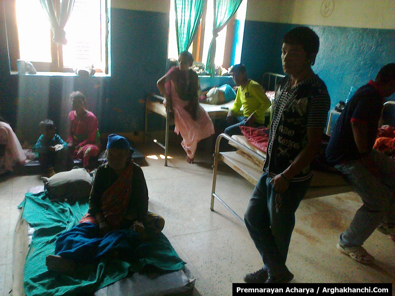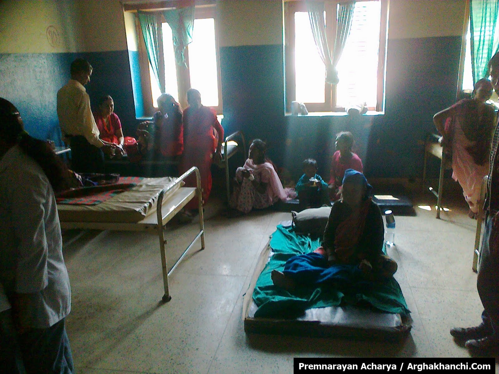 बिरामीको चाप: अर्घाखाँचीको सन्धिखर्कमा रहेको १५ सैयाको जिल्ला अस्पतालमा बिरामीको चापले भर्ना भएका बिरामी भुईमा बसेर उपचार गर्दै । अहिले दैनिक ३० देखि ६० जना बिरामी उपचारको लागि भर्ना हुने गर्दछन् ।