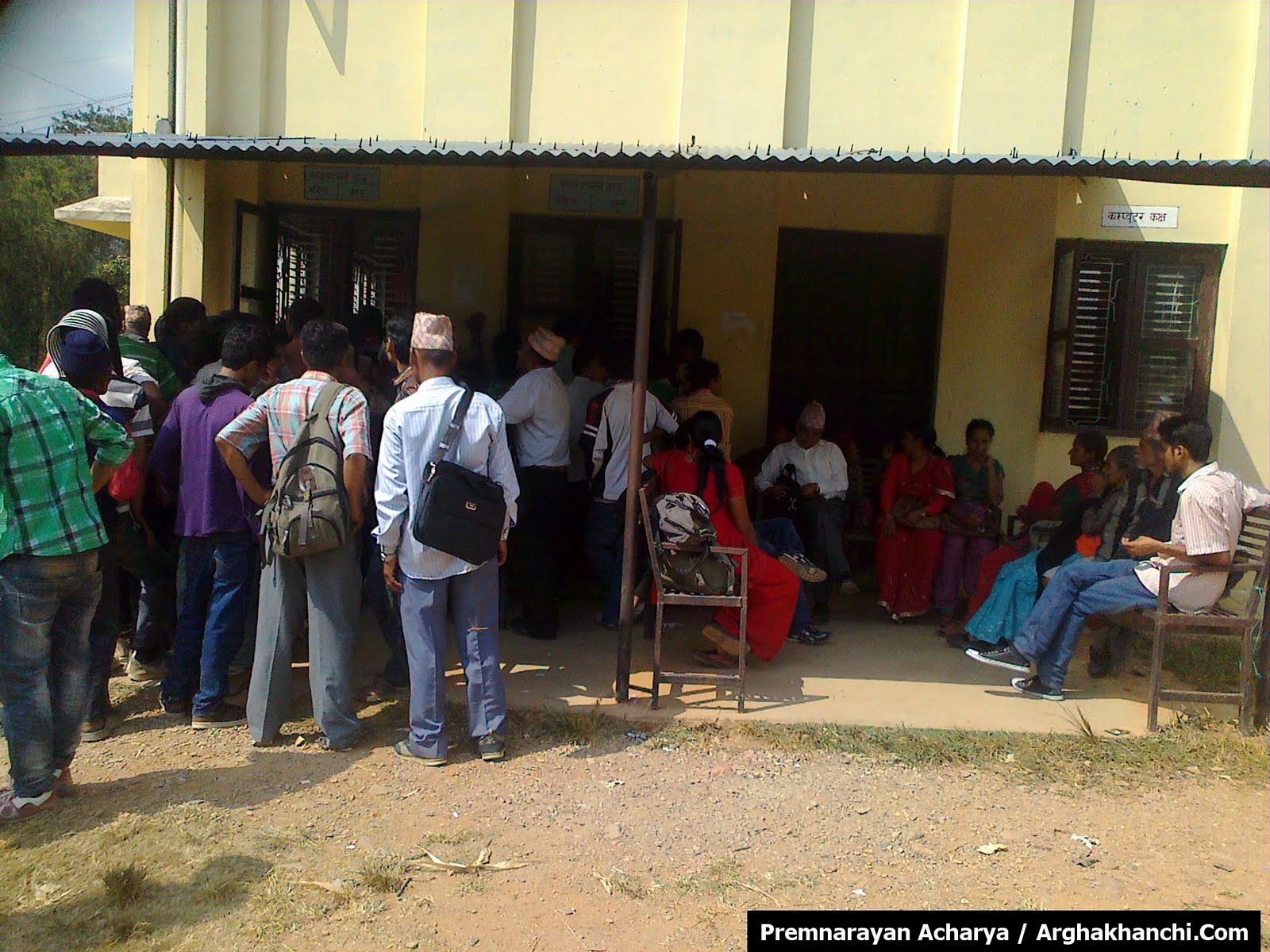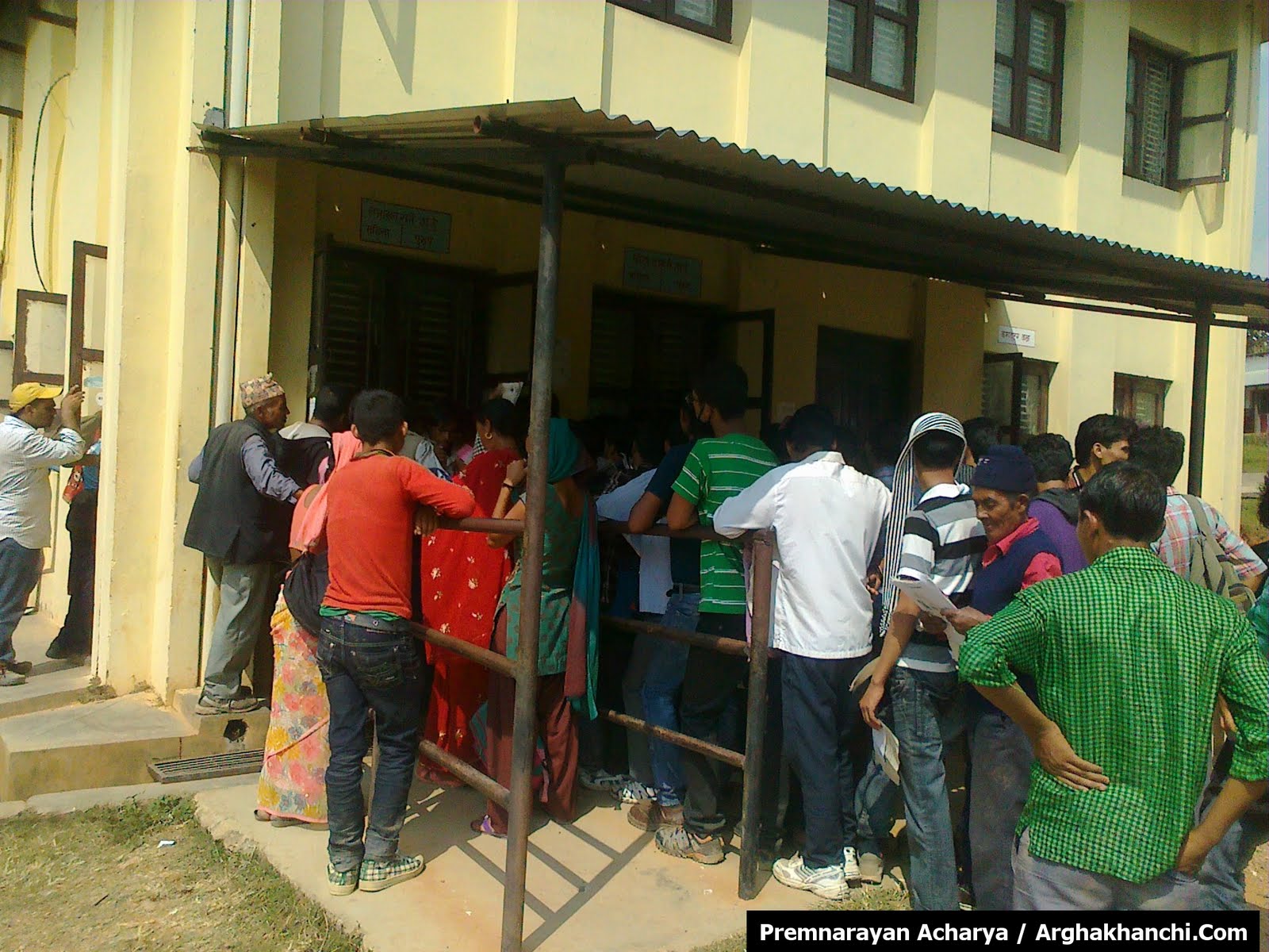 नागरिकता लिनेको भीड: जिल्ला प्शासन कार्यलय अर्घाखाँचीमा दसैमा घर आएका मानिसहरु नागरिकता लिन आफ्नो फाराम बुझाउदै । अन्य दिनमा भन्दा आजभोलि नागरिकता लिन आउने सेबाग्राहीको संख्यामा ५० प्रतिसतले बृद्धि भएको प्रशासनले जनाएको छ ।