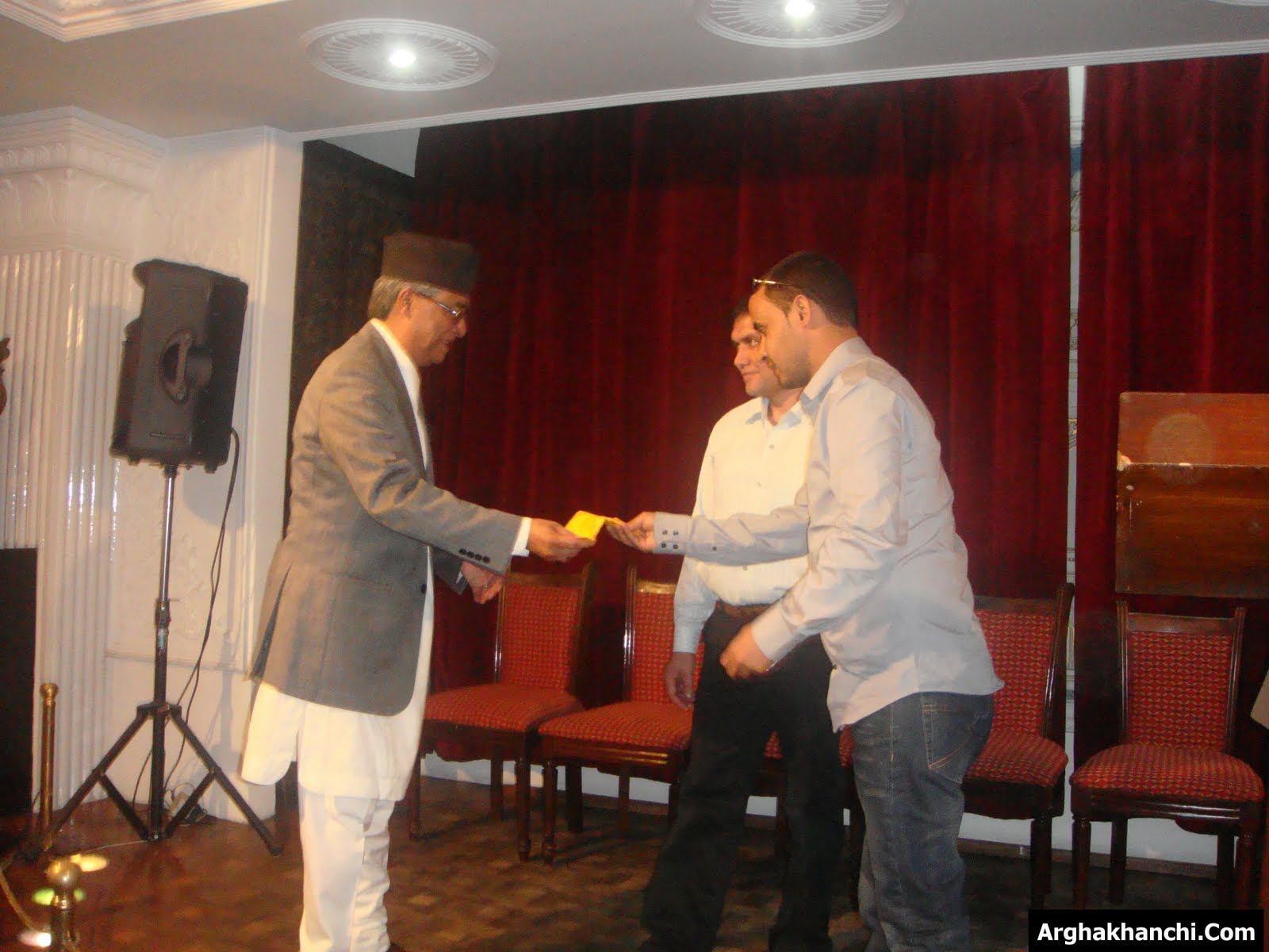 एनआरएन विश्व सम्मेलनमा सहभागी हुन आएका संसार भर रहेका ज.स.स.का पदाधिकारीको सम्मान र स्वागतका लागि पुर्व प्रधानमन्त्री शेर बहादुर देउवाद्धारा आयोजित दिवा भोज कार्यक्रममा सो रकम हस्तान्तरण गरिएको हो।
