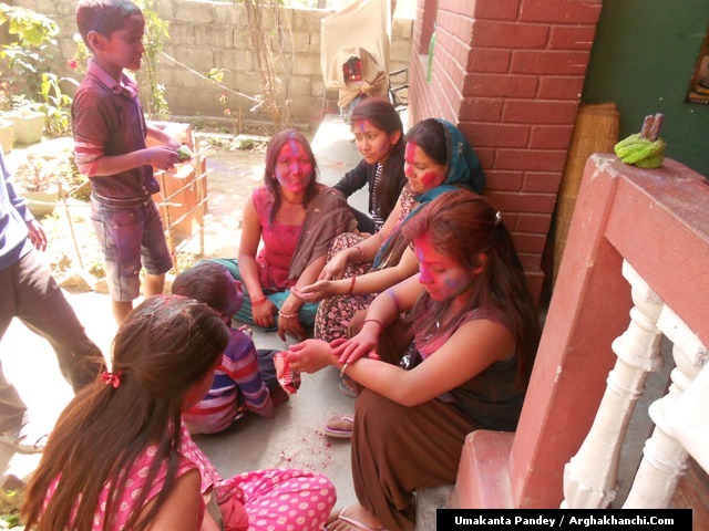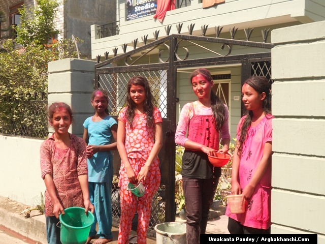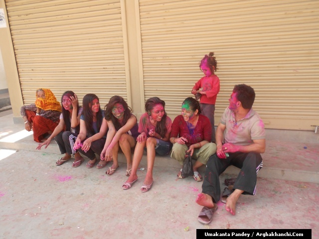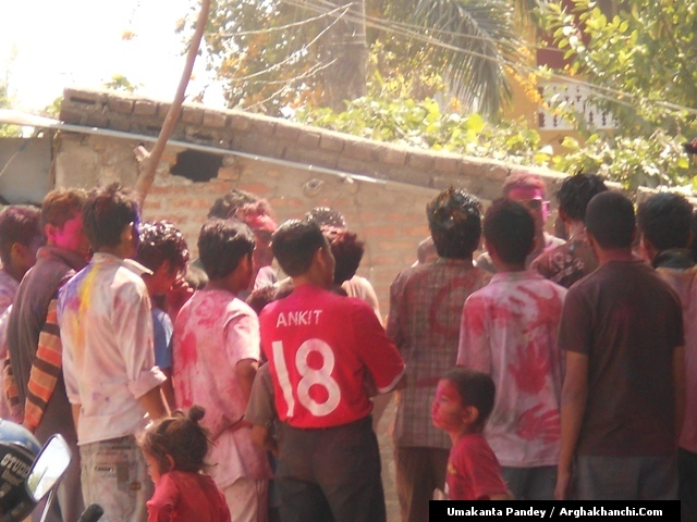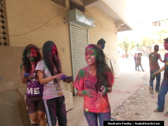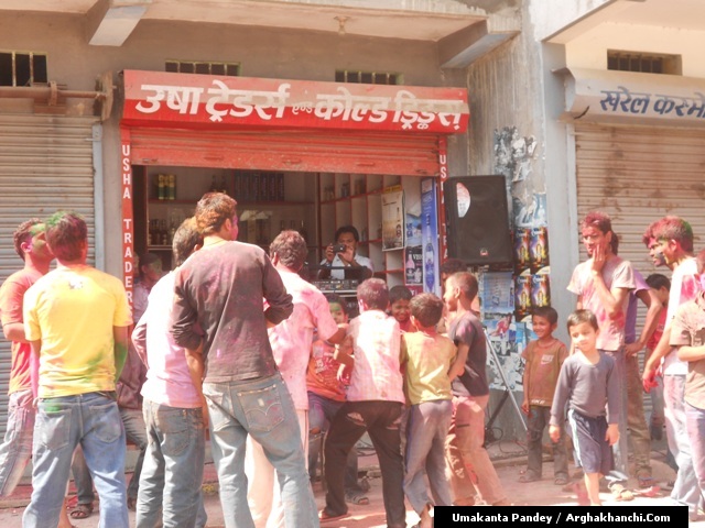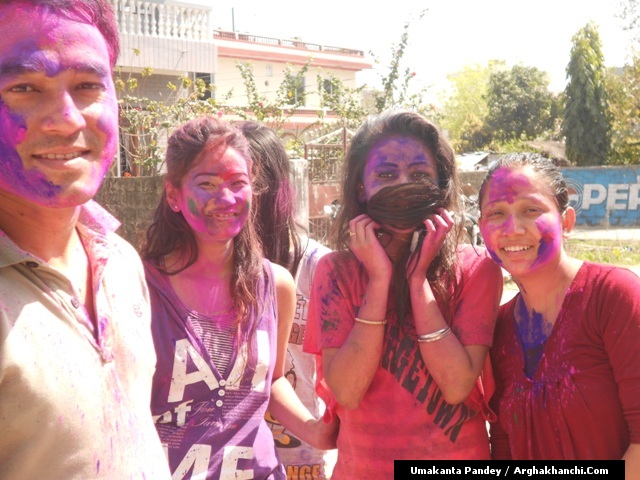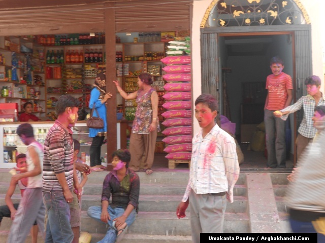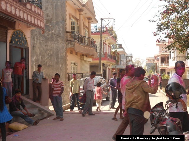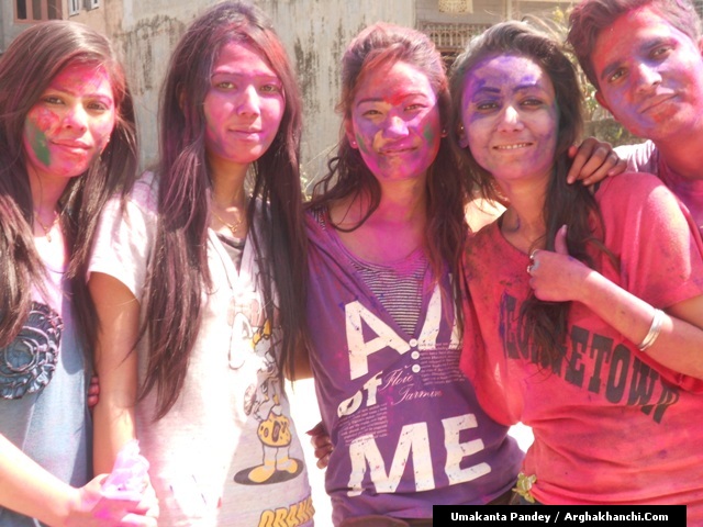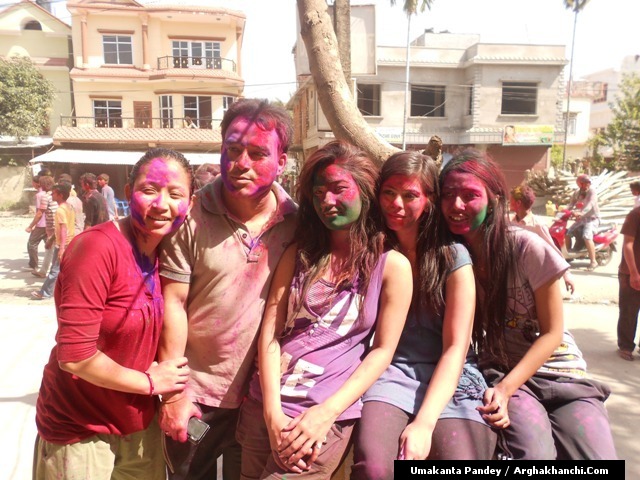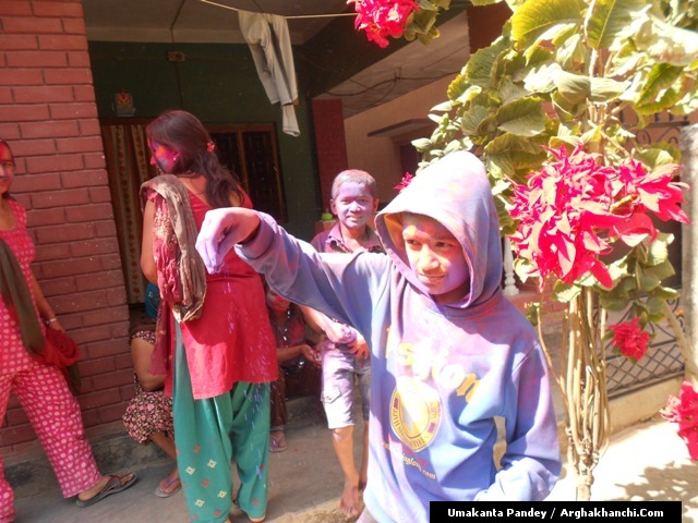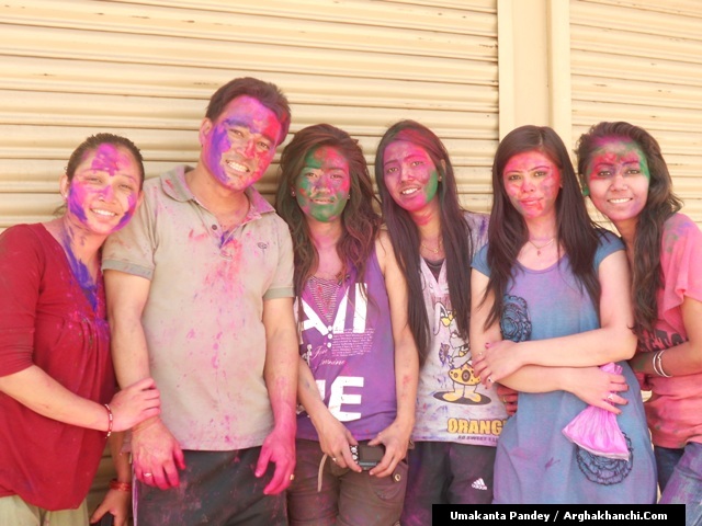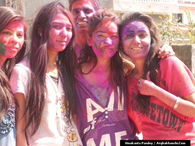 खेलौ होली : गत एक हप्ता अघिदेखि बिधि पुर्वक भित्रिएको “होली” पर्व आज तराइका बिभिन्न स्थानमा धुमधामले मनाइएको छ ! असत्य माथि सत्यको जित भएको खुसीयालिमा एक अर्कामा सप्तरगी रन्ग दलेर मनाइने यो पर्वमा स-परिवार एकजूट भई मीठामीठा परिकार बनाइ खाने खुवाउने प्रचलन छ ! खास गरि हिन्दु धर्मावलम्वी हरुले मनाउने यो पर्व हाल सबै धर्मावलम्वी हरुले मिलेर मनाउने गरेको पाइन्छ ! नेपाल – भारत लगायत बिश्वका अन्य मुलुकमा यो पर्व मनाउने गरिएको भए पनि हाल बिश्वका अन्य मुलुकहरुमा पनि मनाउने गरेको देखिन्छ ! देशका बिभिन्न स्थानमा आ-आफ़्ना तरिकाले मनाउने यो पर्व नेपालको पहाडी भागमा भने अन्न उब्जनि राम्रो होश भन्दै खेत बारिको सिरानमा “चिर” पोली होली गीत गाइ मनाउने गरिन्छ !यसै क्रममा नेपालका बिभिन्न स्थानमा “होलि” पर्व मनाएका द्रीश्य (तस्विरहरु) अर्घाखाचि डटकम डेस्कमा प्राप्त भएका छ्न ! खास गरि बुटवल र अर्घाखाचिका बिभिन्न स्थानमा मनाएका तस्विर हरु यहा प्रस्तुत गरिएको छ ! – तस्विर : उमाकान्त पाण्डे गाउले – अर्घाखाँची – बुटवल !
