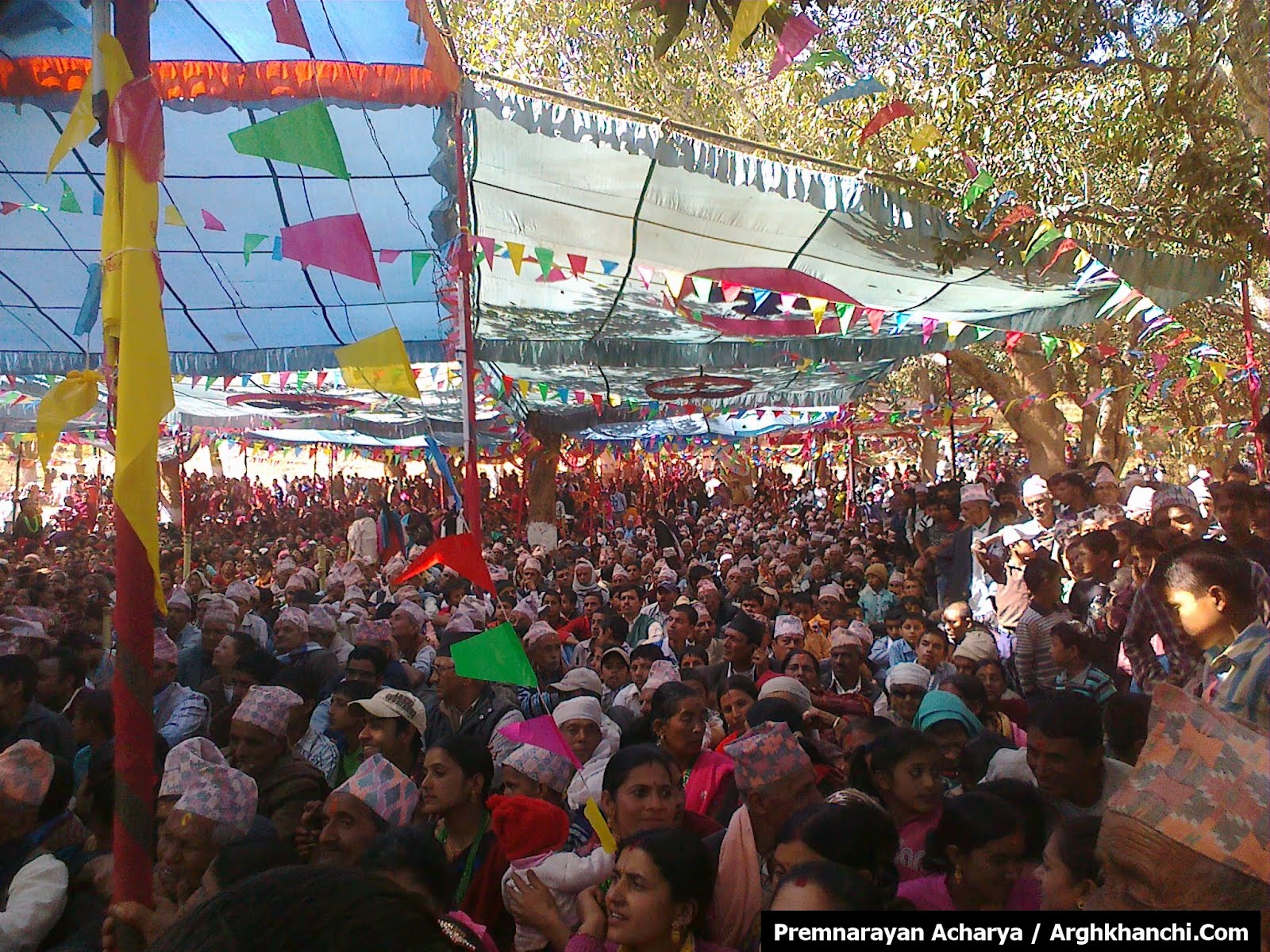 अर्घाखाँचीको वाग्ला मथुरामा सहकारी अस्पताल निर्माण र कृषि क्याम्पस निर्माणका लागि सुरु भएको एक हप्ते श्रीमद्भागबत ज्ञान महायज्ञ सम्पन्न भएको छ । महायज्ञमा २ करोड ६ लाख भन्दा बढी आर्थिक संकलन भएको भएको छ । सरकारी अस्पताल र कृषि क्याम्पस निर्माणर्थ शुरु भएको एक हप्ते श्रीमद्भागबत ज्ञान महायज्ञमा बाचन प्रबिण पं. दिनबन्धु पोख्रेलले कथा बाचन गनु भएको थियो । ऐतिहासिक तथा धार्मिक स्थल गोपेश्र पीठ मथुराभाममा सहकारी अस्पताल निमाृण कृषि क्याम्पसको पुर्बाधार निर्माण बृद्धाश्रम निर्माण गोपेशर पीठको संरक्षण गर्न महायज्ञ आयोजना गरिएको र उठेको रकमको सहि सदुपयोग गर्ने श्रीमद ज्ञानमहायज्ञ मुल आयोजक समितिका संयोजक डाक्टर रामबहादुर बिसीले बताउनु भयो । नेपाल सरकार स्थानीय बिकास मन्त्रालयबाट स्थानीय बिकास मन्त्रि टोपबहादुर रायमाझिको पहलमा ३१ लाख जिबिस अर्घाखाँचीबाट २० लाख महायज्ञमा ब्यकि्रगत रुपमा सबै भन्दा बढि दान दिने स्थानीय ९२ बर्षिय जीबनारायण अधिकारी र अधिकारीको परिबारबाट १५ लाख ७ हजार लगायत बिभिन्न गाविस सरकारी तथा गैर सरकारी सस्था र ब्यक्तिबाट गरि कुल २ करोड ६ लाख ६३ हजार ८ सय ९४ रुपिया संकलन भएको । श्रीमद् भागबत ज्ञान महायज्ञको समापन समारोह ९२ बर्षिय जीबनारायण अधिकारीको प्रमुख आतीथ्यता महायज्ञ मुल आयोजक समितिका अध्यक्ष डा रामबहादुर बिसीको अध्यक्षतामा सम्पन्न भएको हो ।