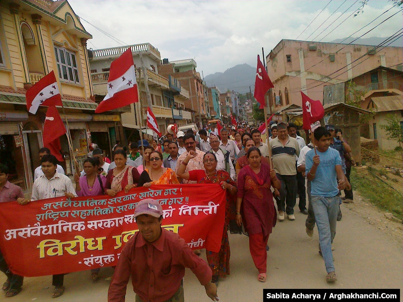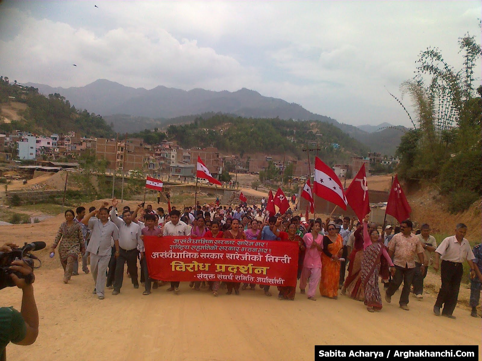 अर्घाखाँची २५ जेठ ।  नेपाली काग्रेस  नेकपा एमाले  नेकपा एकिकृत  राप्रपा र राष्ट्यि जनसक्ति पाटी गरि ६ राजनितिक दलले आज अर्घाखाँचीको सन्धिखर्कमा बर्तमान काम चलाउ  सरकारको बिरुद्धमा प्रदर्शन गरेका छन् ।