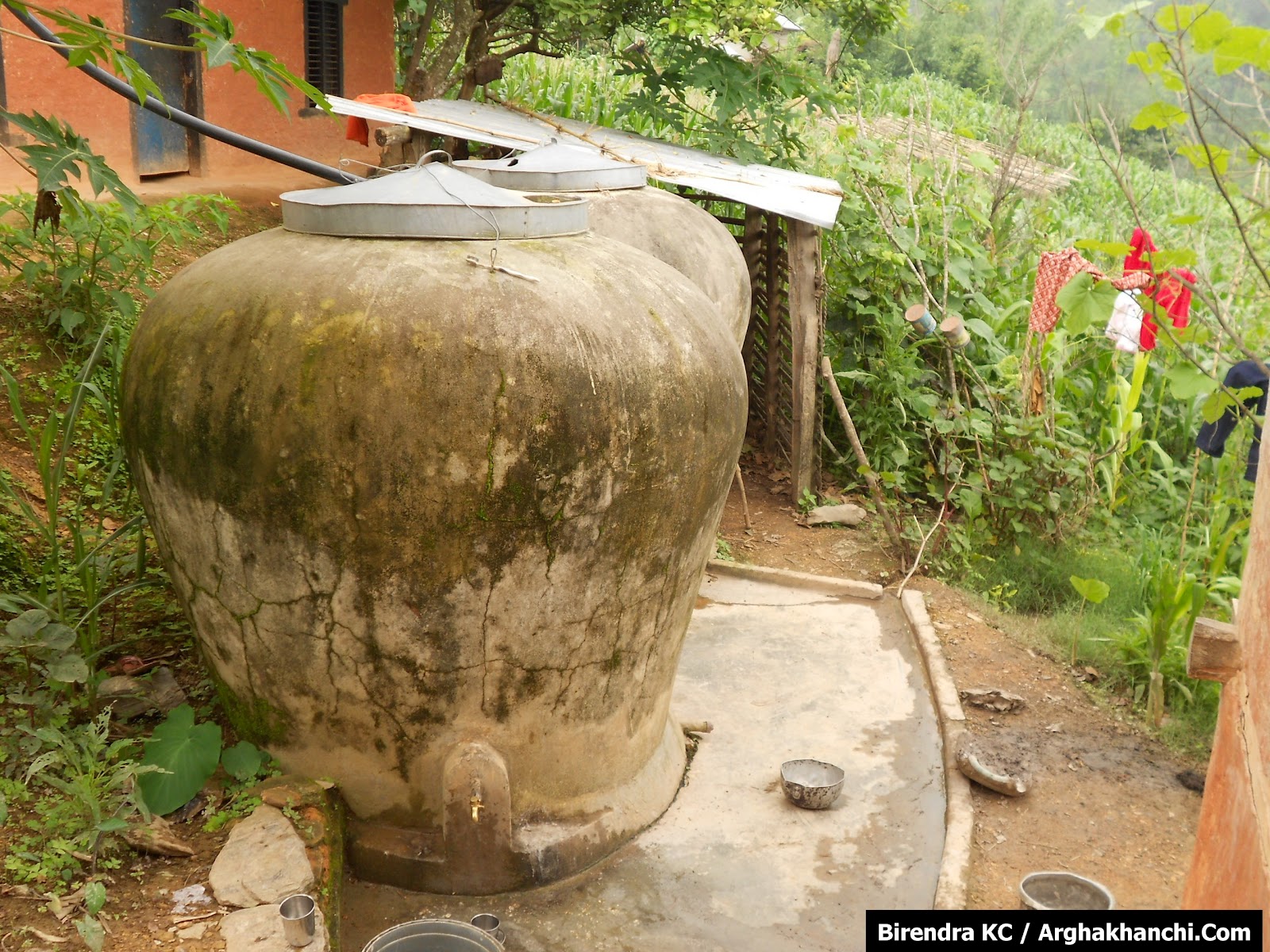 घर छेउँमा बनाएको सिमेन्टको घैटोले घण्टौ समय लगाएर पानी बोक्ने समस्याबाट छुटकारा दिएको छ । हिउँदको समयमा यी घैटा रित्तै हुन्छन उनले भनिन वर्षामा भरिन्छन त्यहि पानी खान्छौ । अहिले आकाशबाट पानी पर्दा घरको छानोबाट खस्ने पानी बाहिर खेर पालिदैन । घर र थारो वरीपरीबाट पाईपको डुँड थापेर घैटोमा जम्मा गरिन्छ । उनी मात्र होईन गोखुंगा बल्कोट चिदिका केरुगा गाविसका गाउँले आकाशबाट पानी परेपछि खानेपानीको लागि दुःख टरेको सम्झन्छन । असार देखि भदौसम्म यहि घैटाको पानीले जुगारा गर्छौ र अर्की गृहणी ईन्दिरा पौडेलले भनिन त्यसपछि आकाशबाट पानी पर्न छाड्छ अनि आउँछन खानेपानीका दुःख । सबैभन्दा घरका गृहणीलाई समस्या हुने गर्छ ।