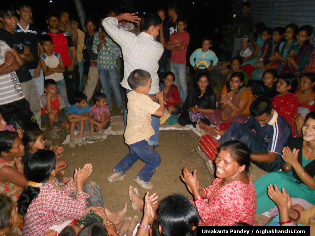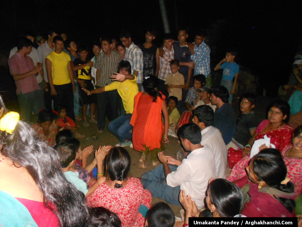 अहिले गाउँघरमा तीजको चहलपहल सुरु भएको छ । अर्घाखाँचीको सदरमुकाम सन्धिखर्क आसपासमा तीजको लहर निकै बढेको छ । प्राय सधैंजसो यहाँका गाउँगाउमा स्थानीय एकै ठाउँमा जम्मा भएर यसैगरी तीजका भाकामा रमाउने गर्दछन। अर्घाखाँचीका सम्पूर्ण गाविसमा अहिले यसै गरि रमाइलो सग तीज मनाउन लागेको देख्न सकिन्छ भनेर साउथ एसियाको नेपाल-अर्घाखाँचीमा रहेका अर्घाखाँची डट्कमका विदेश प्रमुख उमाकान्त पाण्डे गाउंले ले ईमेल मार्फत तस्बिरमा जानकारी गराएका छन।