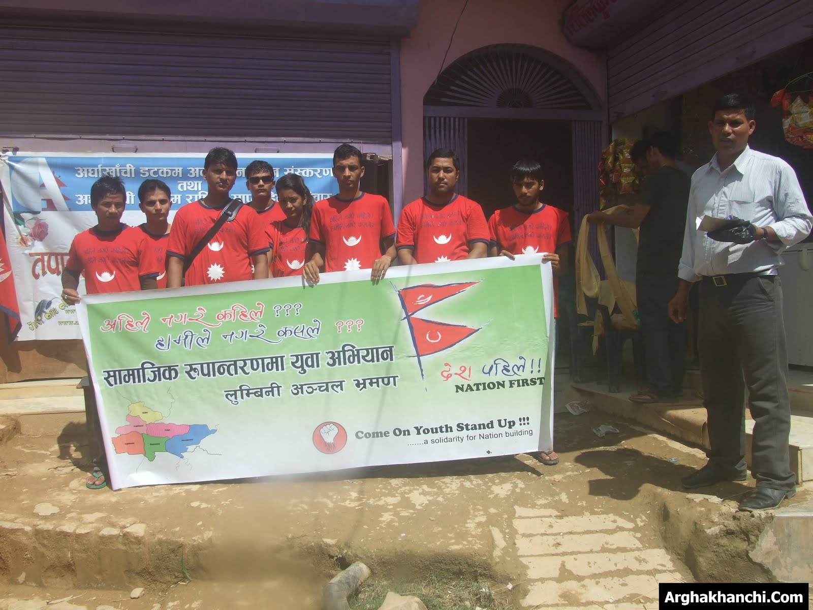 अहिले नगरे कहिले?हामीले नगरे कसले? भन्दै निस्केको टोली रुपन्देहीको मुर्गिया,कपिलवस्तुको चार नम्बर तथा अर्घाखाँचीको ठाडा दह,नरपानी , फुदवाङ बजार अर्घाखाँचीमा बिशेष कार्यक्रम गर्दै टोली सन्धिखर्कमा आइपुगेको हो । यात्राको क्रममा आम युवाबाट सकारात्मक पहल गर्ने तथा अब समाज रुपान्तरणमा आफुहरु लाग्ने प्रतिबद्दता जनाएको कमअन युथ स्ट्यान्डप बुटवलका लुम्बिनी अञ्चल छेत्रीय निर्देशक सुमन श्रेष्ठले जानकारी दिए । समाजिक रुपान्तरणका लागि युवाहरु एक हुनु पर्ने र त्यसैका लागि सुचना र सन्देश सहित यात्रा तय गरिएकोले ठाउँठाउका युवाहरुले एक्यवदत्ता जानाउदै टोलीलाइ साथ दिएको यात्र सयोजक नविन पन्तले बताए ।
