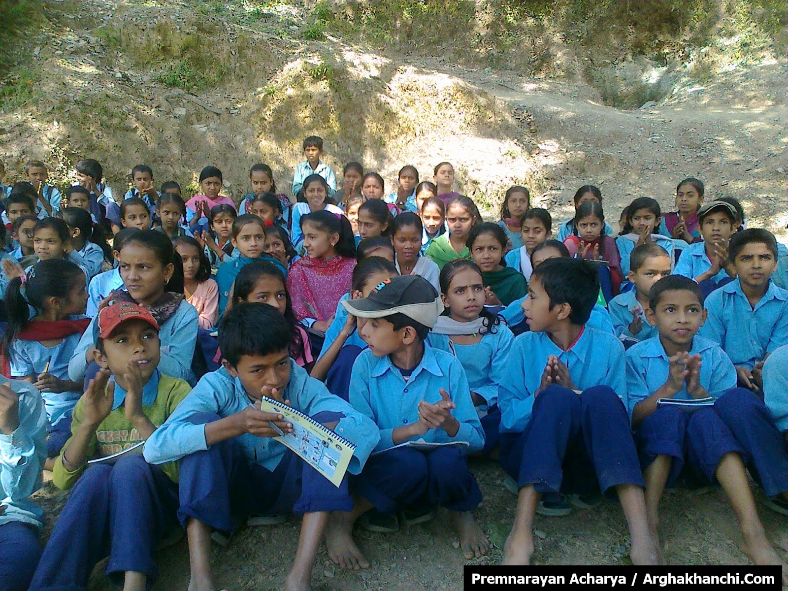 अर्घाखाँची २२ असोज । सफा रहौ स्वस्थबनौ आफ्नो गाउँ आफै स्वच्छ बनाउ भन्ने नाराका साथ अर्घाखाँचीको नुवाकोट गाविसमा बालबालिकाहरु गाउँको सरसफाइमा लागेका छन् ।