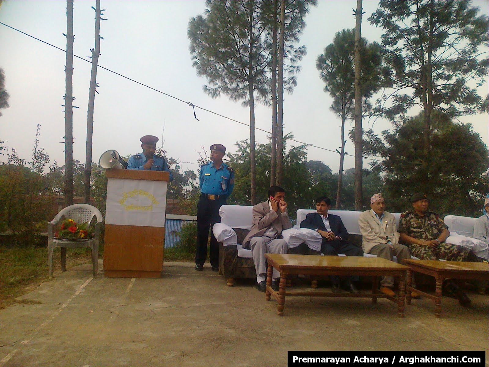 जिल्ला प्रहरी कार्यलय अर्घाखाचीमा ३सय ३५ कर्मचारी कार्यरत रहेका छन । कार्यक्रममा प्रमुख जिल्ला अधिकारी गोबिन्द मणि भुर्तेलले शान्ती सुब्यबस्था र सुरक्षा ब्यबस्था बलियो बनाइ आम अर्घाखाचीबासीलाइ सुरक्षा प्रदान गर्न सबै प्रहरी कर्मचारीलाइ आग्रह गर्नु भयो ।