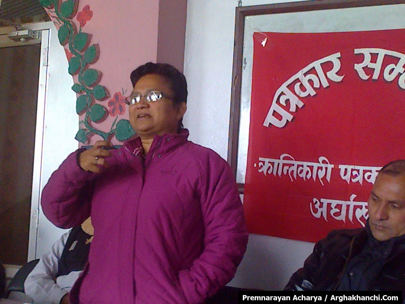क्रान्तीकारी पत्रकार महासंघ अर्घाखाँचीले आज बिहान सन्धिखर्कमा गरेको पत्रकार सम्मेलनमा बोल्दै प्रबक्ता भुसालले प्रधानमन्त्री भट्राई, एमाओवादी अध्यक्ष प्रचण्ड, नेपाली काग्रेस, एमाले र मधेशी मोर्चाका कारण संविधान सभाको विघटन भएको जिकिर गर्दै तिनै दलहरुले पुःन संविधान सभाको निर्वाचनको कुरा गर्नु हास्यास्पद भएको बताउनु भयो ।