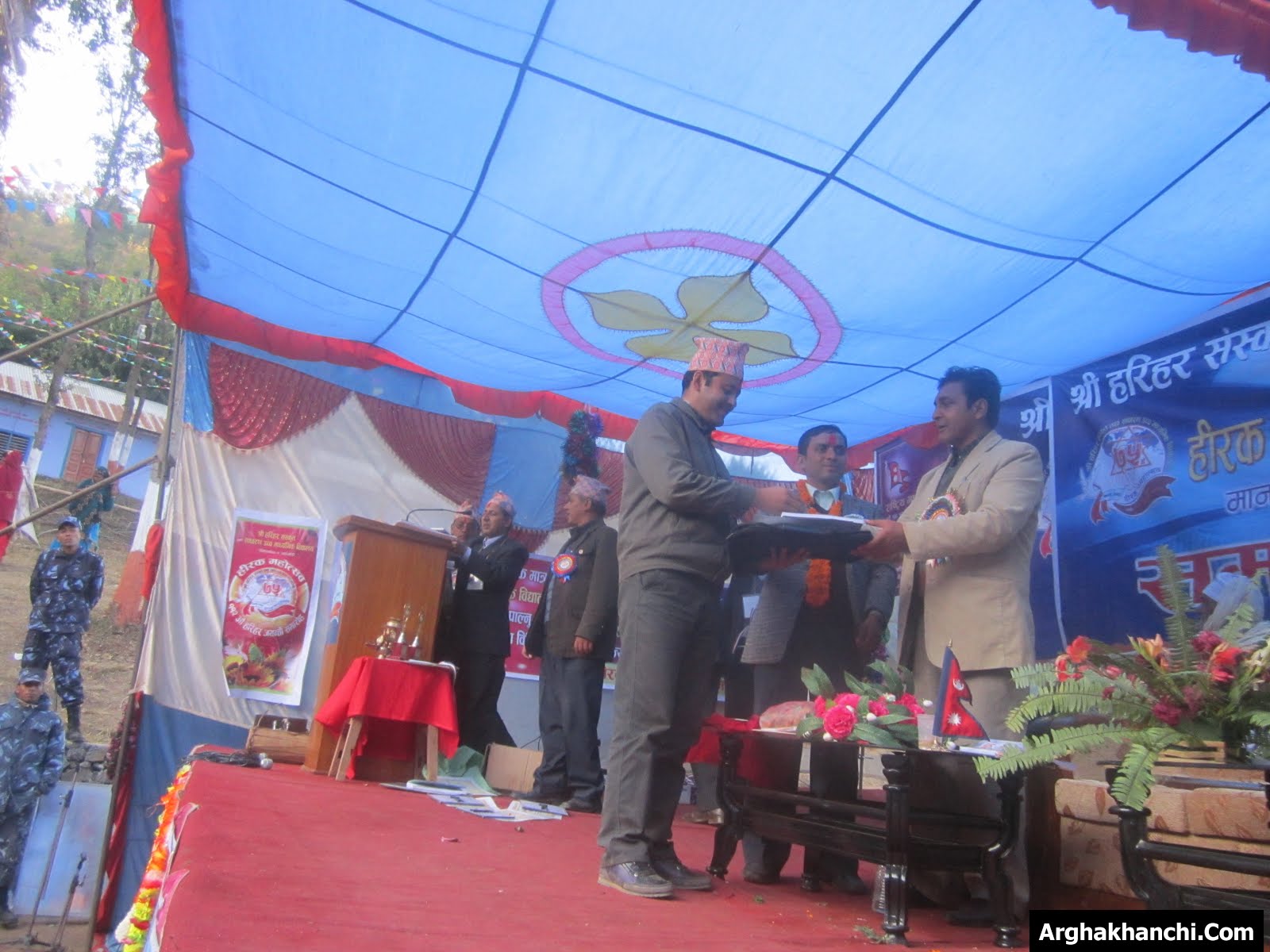 पोखराथोक, अर्घाखाँची । हीरक महोत्सवमा सबैभन्दा उत्कृष्ट सामाचार सम्प्रेषण गरेको भन्दै अर्घाखाँची डट्कमका सम्पादक तथा कान्तिपुर दैनिकका अर्घाखाँची संवाददाता वीरेन्द्र केसीलाई विद्यालयले सम्मान सहित पुरस्कृत गरेको छ ।