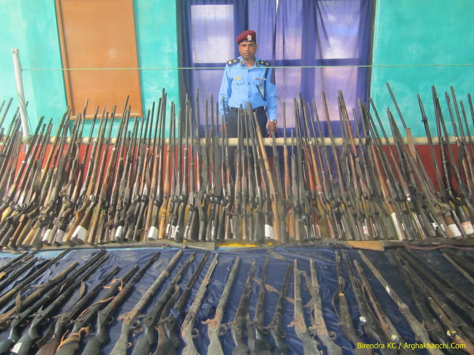 गाउँमा पुगेर प्रहरीले ईजाजत प्राप्त नभएका हतियार संकलन गरको हो । गाउँमा लुकाई राखेका अवैध हतियार घर-घरमै संकलन गरिएको हतियार मध्ये ११ जान बेसाबुत रहेको जनाएको छ ।