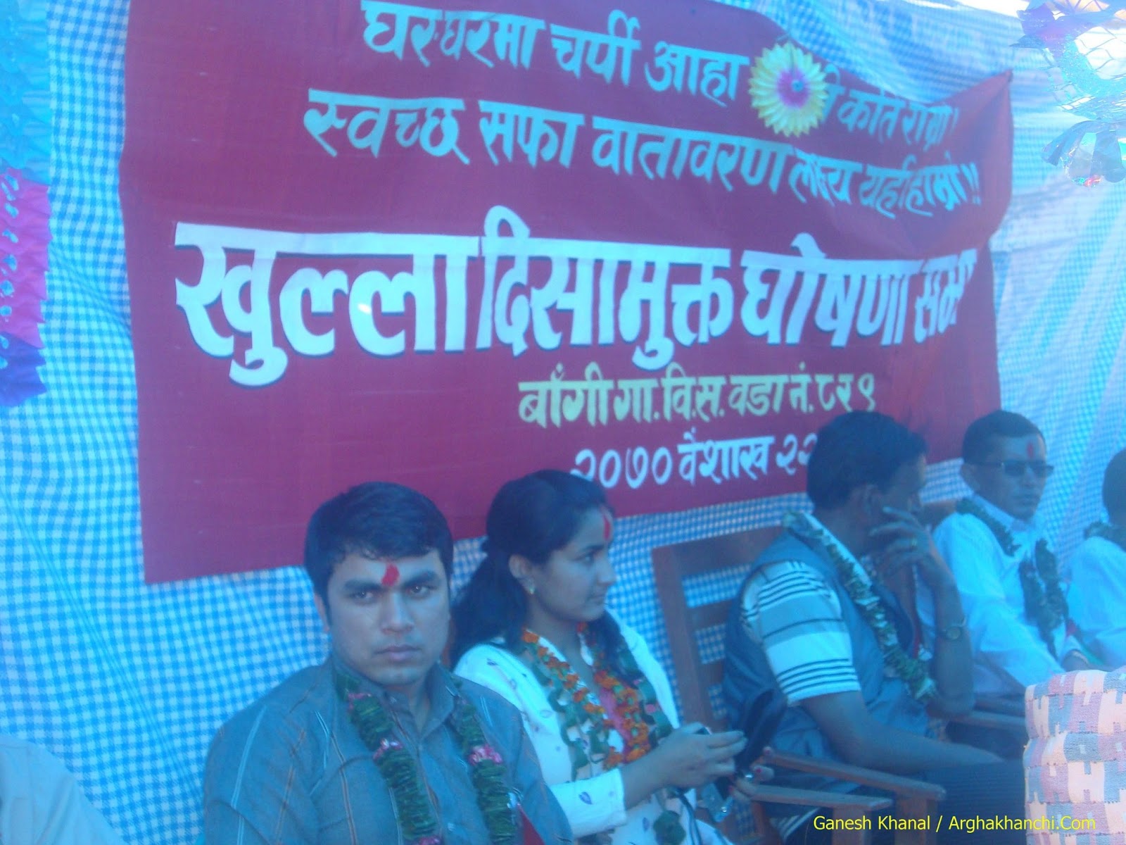 बॉगी, अर्घाखॉची बैशाख २२ गते । अर्घाखॉचीमा खुल्ला दिशा मुक्त घोषण गर्ने अहिले लहर नै चलेको छ । सोही अभियमान अन्र्तगत आईतवार बॉगी वाड नम्वर ८ र ९ तथा सिद्ध मा वी भण्डारको सेवा क्षेत्रलाई एक समाहरोका विच खुल्ला दिशा मुक्त क्ष्ँेत्र घोषणा गरिएको छ ।