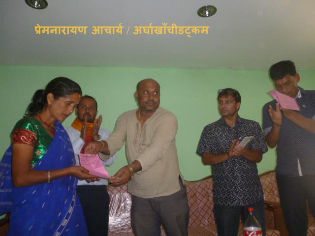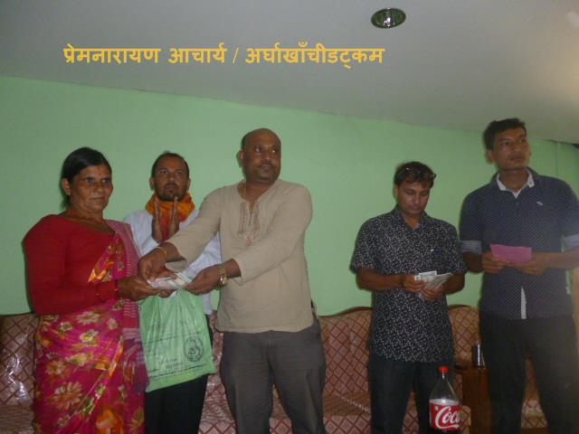 अर्घाखाँचीबाट कतारमा गएका युबायुबतीको सानो सहयोगले पनि भुक्मप पिडीतको घाँउमा मलाम लगाउन सकिने र थोरै थोरै राहात सहायोले पनि पिडीतको घाउमा मलामपटी लगाउने हेतुले राहात बितरण गरिएको अर्घाखाँची सेवा समाज दोहा कतारका पुर्ब कोषाध्यक्ष राजकुमार श्रेष्ठले बताए ।