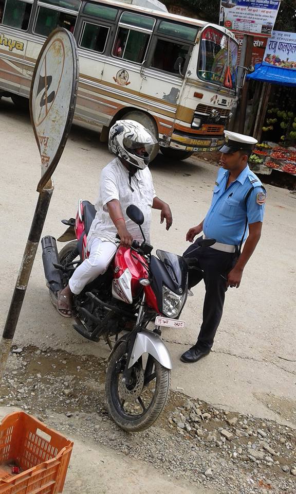 ट्राफिक प्रहरीले शनिबार गरेको चेकजाँचमा बिभिन्न सरकारी कार्यालयका २ वटा ठुला गाडी र १ वटा मोटरसाइकलले चेकपास नलिइ चलाएकोले चेकपास लिएरमात्र गाडी चलाउन अनुरोध गरी फर्र्काएको जिल्ला ट्राफिक प्रहरी कार्यालयका प्रमुख रेसम बहादुर रानाभाटले जानकारी दिनुभएको छ ।
