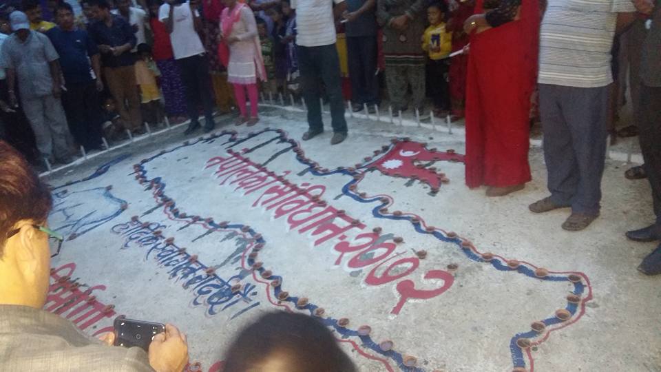संविधान जारी भएलगत्तै नेपालको राष्ट्रिय झण्डा फहराउँदै, राष्ट्रिय गीत गाएर, दिपावली गरेर हाम्रो संविधानः राम्रो संविधान भन्ने जस्ता नारा लगाएर, अनुहारमा राष्ट्र र आ-आफ्नो पार्टीको झण्डा बनाएर, एकआपसमा सर्वसाधारणले एक-आपसमा खुशी साटिरहेका छन् ।