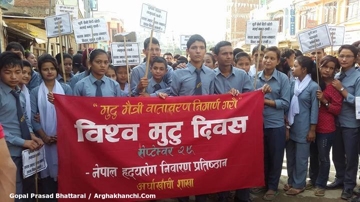 विश्व मुटु दिवसको अवसरमा जनचेतना मुलक प्लेकार्ड सहितको -याली सदरमुकाममा निकालिएको थियो ।