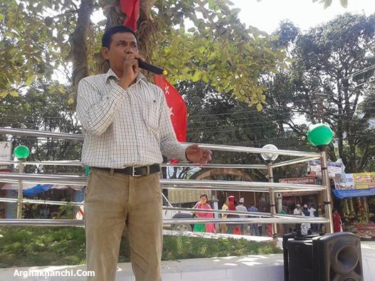राष्ट्रिय जनमोर्चा अर्घाखाँचीले अयोजना गरेको उक्त सभालाई प्रमुख अतिथीको आसनबाट सम्बोधन गर्दै राष्ट्रिय जनमोर्चाका राप्ती-लुम्बिनी क्षेत्रिय इन्चार्ज शेर बहादुर वि.सी.ले नेपालको संविधान निर्माणमा आफ्नो भूमिका नभएको र संविधान भारतको हितमा जारी नभएकाले भारतले नेपालीहरुलाई दःख दिन खोजेको भन्दै भू-परिबेष्ठित राष्ट्र नेपालमाथी भारतले गरेको अपमानजनक ब्यबहारलाई नेपाली जनताले सहन नसक्ने बताउदै बिरोध जनाएका छन् ।