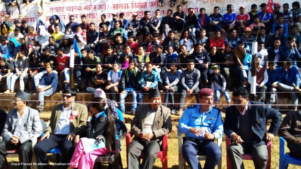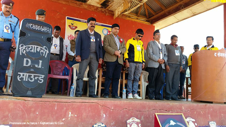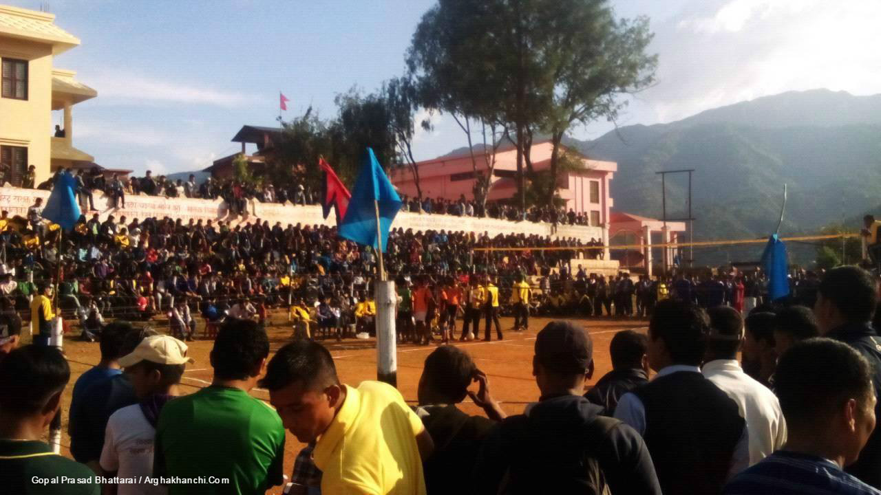 जिल्लाका बिभिन्न गाविस र सन्धिखर्क नगरपालिकाका केहि वाड गरि १८ टिमको सहभागीता रहेको भलिबल प्रतीयोगतिाको जिल्ला खेलकुद बिकास समितिका अध्यक्ष सिद्धि प्रसाद भुसालले उद्घाटन गर्नुृ भयो ।