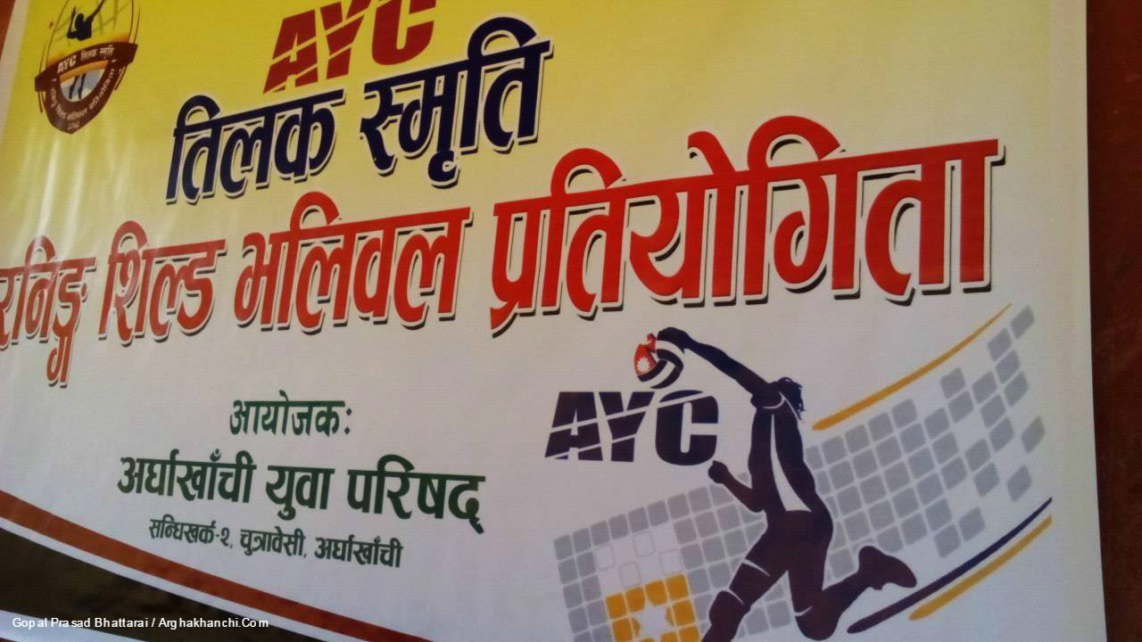 यूवाहरुको एकता समाज सुधारमा अग्रसरता भन्ने नाराका साथ स्थापीत यूवा परिषदले समाज परिवर्तनका क्षेत्रमा काम गर्नुको साथै जिल्लालाई खेलकुदको क्षेत्रमा अगाडी वढाउन स्थापना काल देखि नै महत्वपूर्ण भूमिका निर्वाह गर्दै आईरहेको छ । अर्घाखाँचीमा विभिन्न पेशा तथा व्यवसायमा आवद्ध सन्धिखर्क २ मा रहेका यूवाहरुलाई समाजसेवामा अग्रसर वनाउने ध्ययका साथ स्थापित अर्घाखाँची यूवा परिषदको आयोजनामा सुरु भएको भलिवल प्रतियोगितामा जिल्लाका विभिन्न गा.वि.स. र सन्धिखर्क नगरपालीकाका विभिन्न वडाहरुवाट १८ समुहले भाग लिएका छन् ।