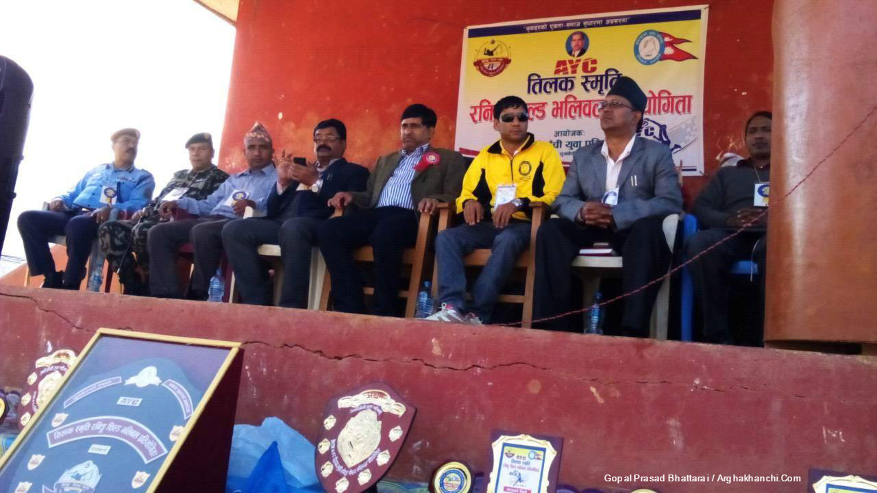 सन्धिखर्क, अर्घाखाँची ।  जिल्ला सदरमुकाम सन्धिखर्क २ मा अवस्थित २०६२ सालमा स्थापना भएको अर्घाखाँची यूवा परिषदका संस्थापक अध्यक्ष स्व. तिलक खत्रीको सम्झनामा गा.वि.स. स्तरिय तिलक स्मृति रनिङ्ग सिल्ड खुल्ला भलिवल प्रतियोगिता शुक्रवार वाट सन्धिखर्कको टुडिखेलमा संचालन भएको छ ।