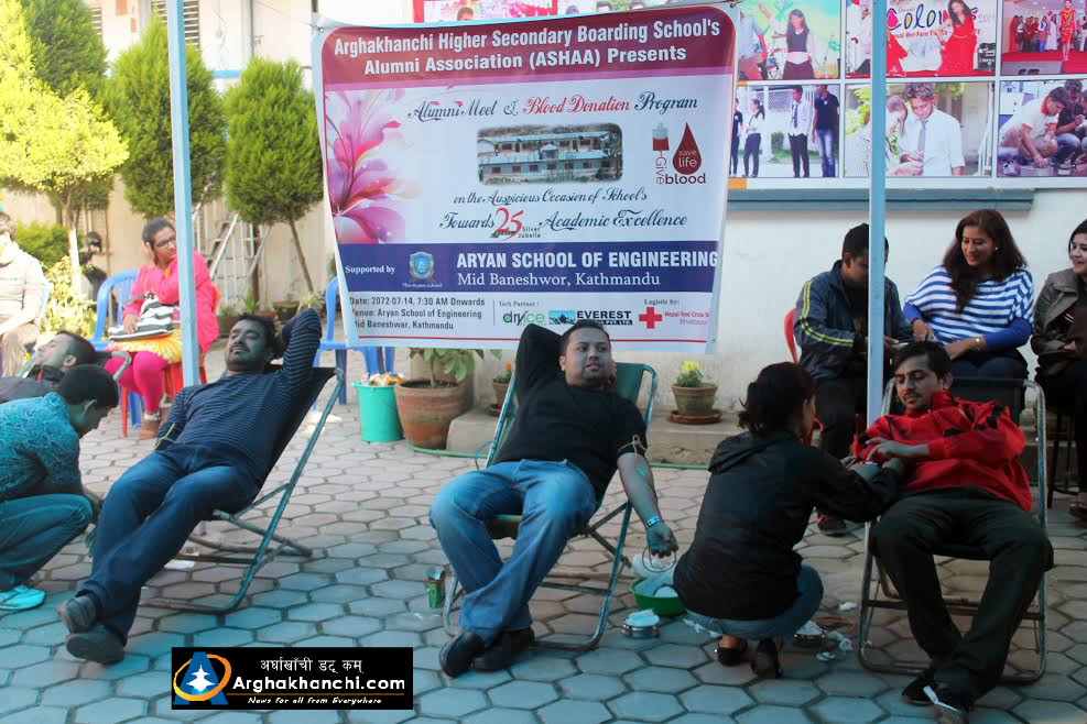 अर्घाखाँची शैक्षिक गुठीको एक कार्यक्रमको रुपमा संस्थाले संचालन गर्दै आएको अर्घाखाँची आवासीय उच्च माध्यमिक विद्यालयले (Arghakhanchi Higher Secondary Boarding School) आफ्नो रजत बर्ष २०७२ को पावन उपलक्ष्यमा उक्त स्कुलका पूर्वविधार्थीहरुबाट रक्तदान तथा पूर्वबिध्यार्थी भेला गत शनिबार आर्यन स्कुल अफ ईन्जिनियरिङमा एक समारोहका बिच सम्पन्न हो ।