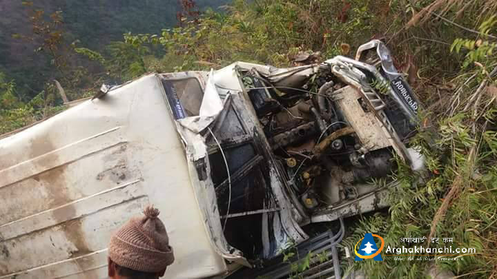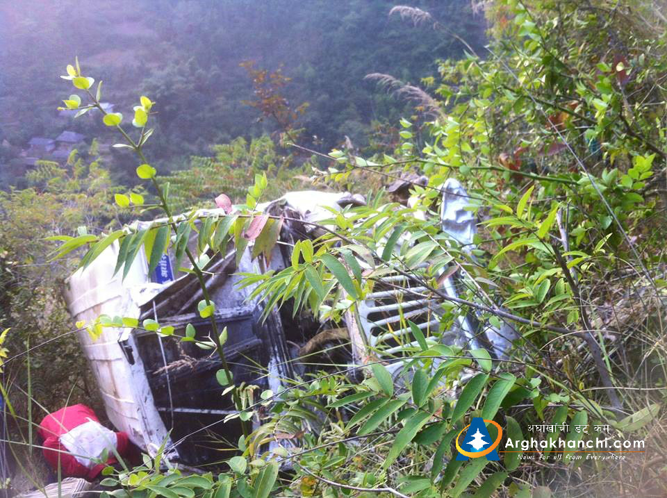 असुरकोट, अर्घाखाँची ।  अर्घाखाँचीको सन्धिखर्कबाट असुरकोट जोगिटारिको लागि छुटेको लु १ ज १७०५ नम्बरको महिन्द्रा जिप असुरकोटको सल्यबथानमा दुर्घटना हुँदा एक जनाको मृत्‍यु भएको छ । पाँच जना घाइते भएका छन् ।