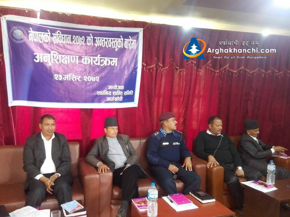 सन्धिखर्कमा नेपालकाे संविधान २०७२ काे अन्तरवस्तुकाे बारेमा अनुशिक्षण कार्यक्रम सम्पन्न (फोटो फिचर)