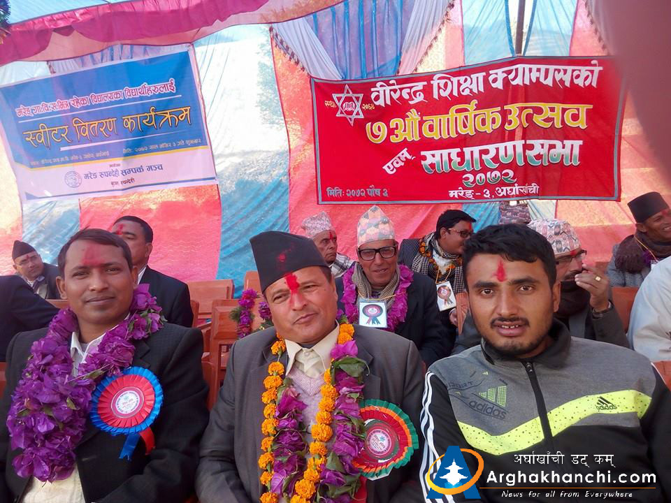 मरेङ , अर्घाखाँची ।  अर्घाखाँची जिल्लाको मरेङ वार्ड नम्बर ३ स्थित वीरेन्द्र शिक्षा क्याम्पसकाे ७अाै वार्षिक उत्सव सम्पन्न भएको छ ।