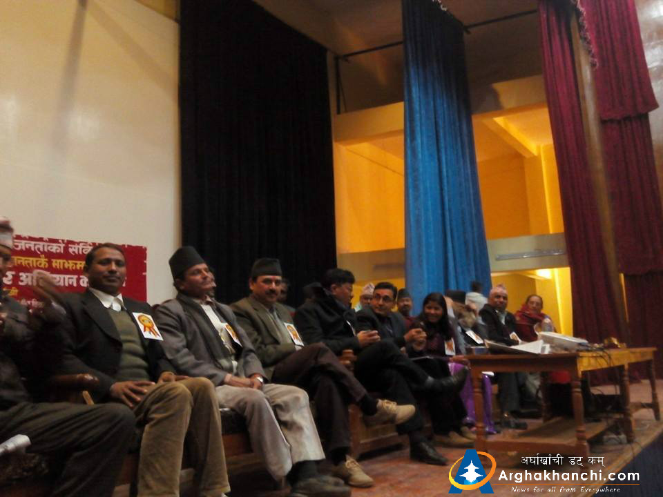 जिल्ला विकास समिति अर्घाखाँचीको आयोजनामा जिविस हलमा सम्पन्न राष्ट्रव्यापी प्रचार अभियान कार्यक्रममा प्रमुख अतिथि उपप्रधानमन्त्री तथा ऊर्जा मन्त्री टाेप बहादुर रायमाझी, सांसद दुमन थापा लगायतको उपस्थिति रहेको थियो ।