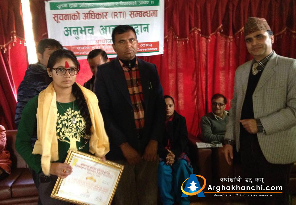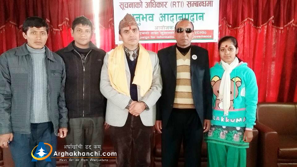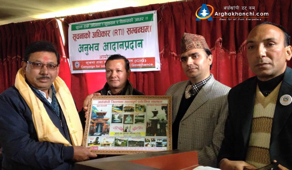 सन्धिखर्क, अर्घाखाँची ।  अर्घाखाँची जिल्लाको सन्धिखर्कमा सिआईजीको आयोजनामा भएको दुई दिने सूचनाको हक सम्बन्धी अनुभव आदान प्रदान कार्यक्रम सम्पन्न भएको छ ।