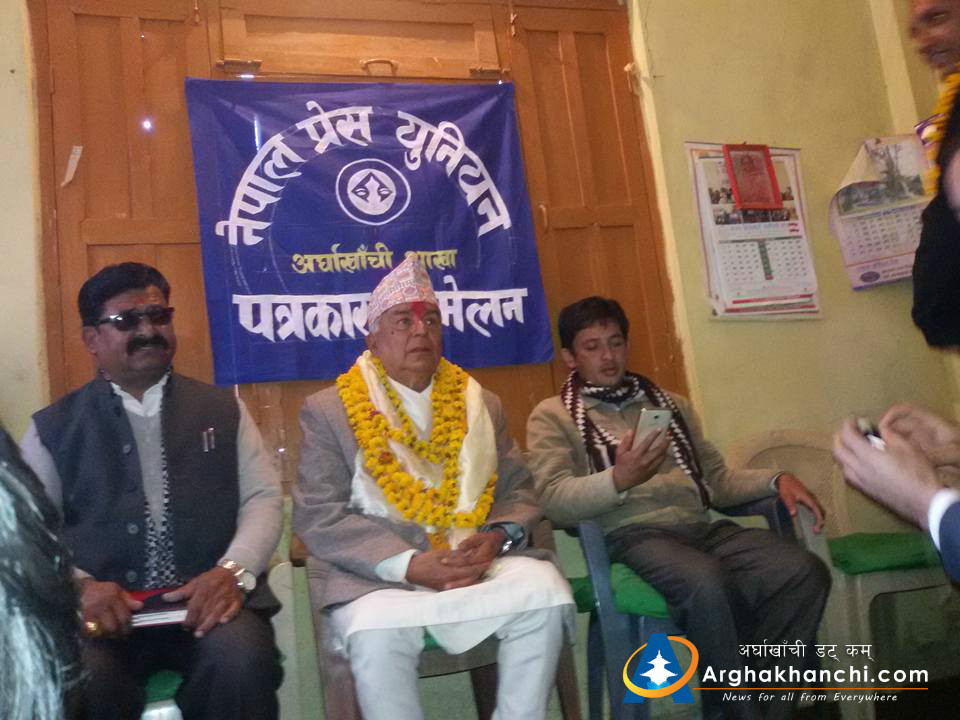 सभापतिको उम्मेदवार घोषणा गरेर जिल्ला दौडाहमा हिडेर भोट मागेको भन्ने हल्ला गलत भएको रिपोर्टर्स क्लव अर्घाखाँची शाखाले गरेको साक्षात्कार कार्यक्रममा कांग्रेसको नेतृत्वमा बनेको संविधानबारे जानकारी दिन जिल्ला दौडाहमा हिडेको बताए ।