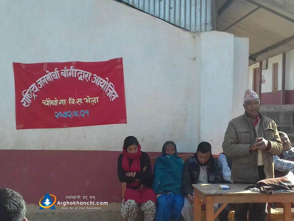 बाँगी, अर्घाखाँची । राष्ट्रिय जनमोर्चा बाँगी अर्घाखाँचीको चौथो भेला आज सम्पन्न भएको छ । राष्ट्रिय जनमोर्चाका केन्द्रिय सदस्य सागर के.सी ले उद्घाटन गर्नु भएको भेलाले विर बहादुर कुवंरको अध्यक्षतामा ९ पुर्ण र २ वैकल्पिक सहित ११ सदस्यीय राष्ट्रिय जनमोर्चा बाँगी गाउ कमिटिको गठन गरेको छ । जसको सचिवमा गिरि प्रसाद आचार्य र कोषाध्यक्षमा कृष्ण पन्थी चयन हुनु भएको छ ।