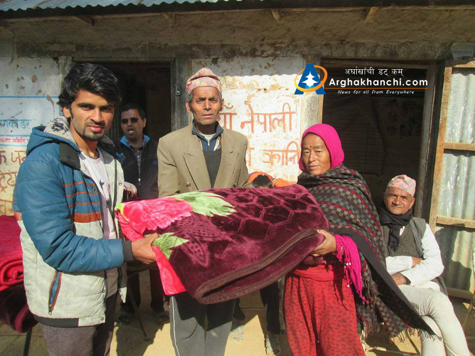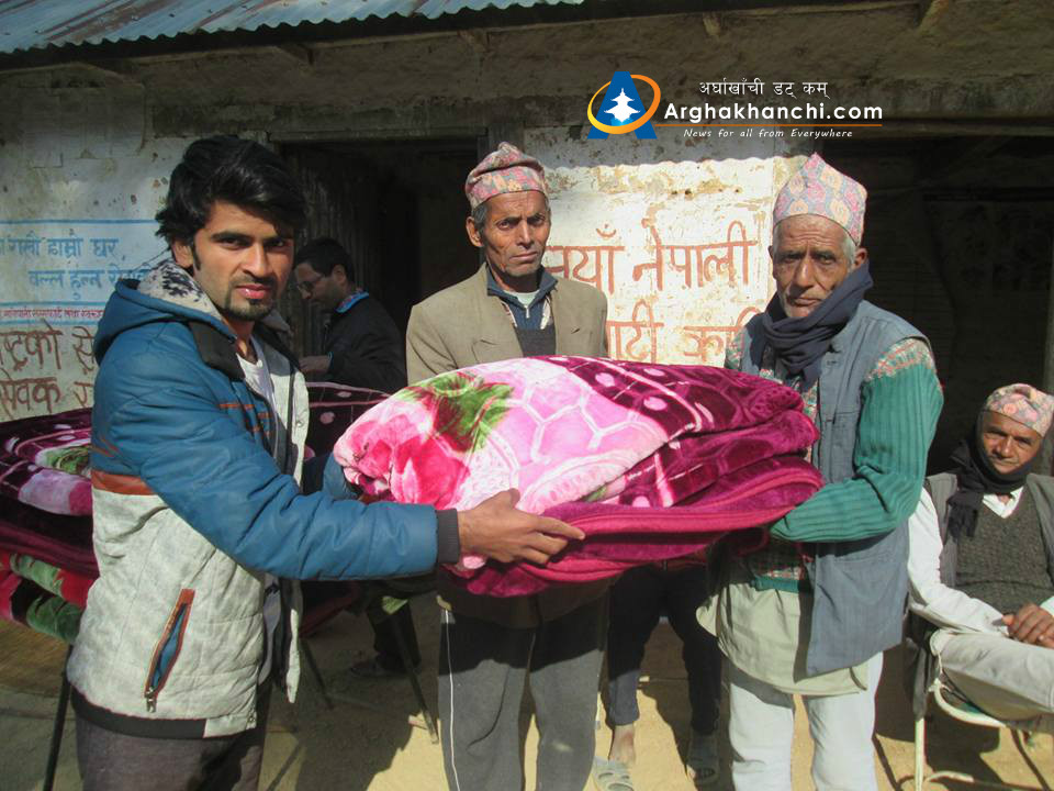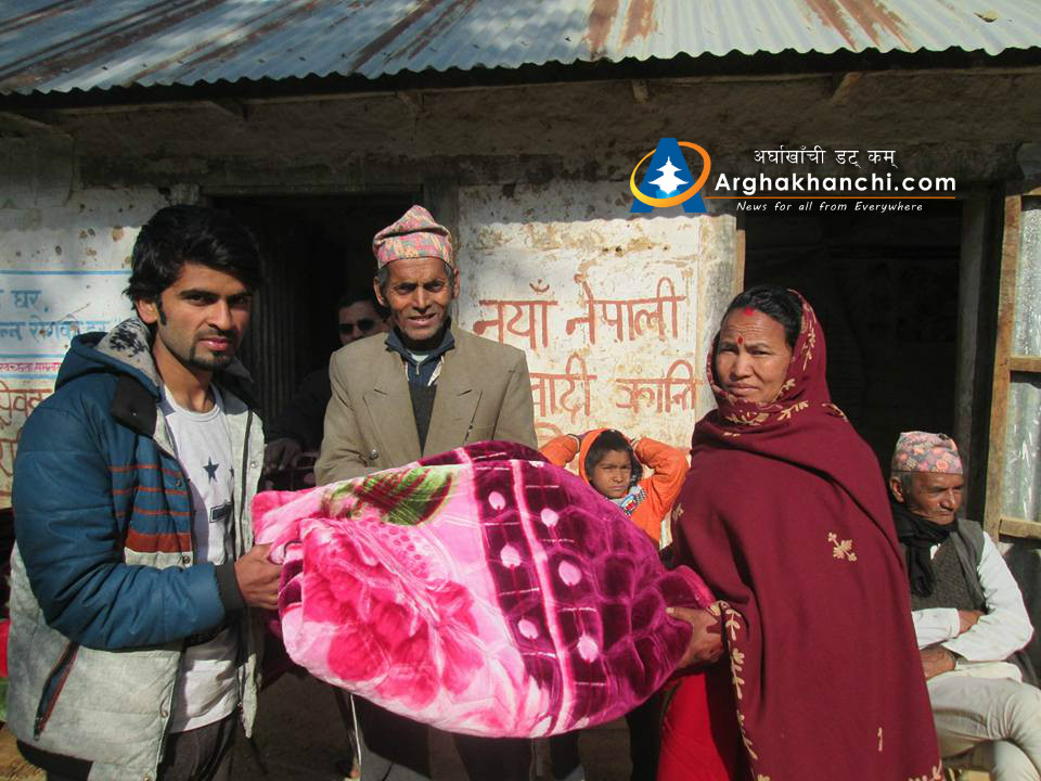 विवेकशील नेपाली अर्घाखाँचीले स्थानिय आर्थिक स्थिती कमजोर भएका अति विपन्न परिवारलाई कम्बल र ब्ल्यांग्केट (न्यानो माया) वितरण गरेको हो ।