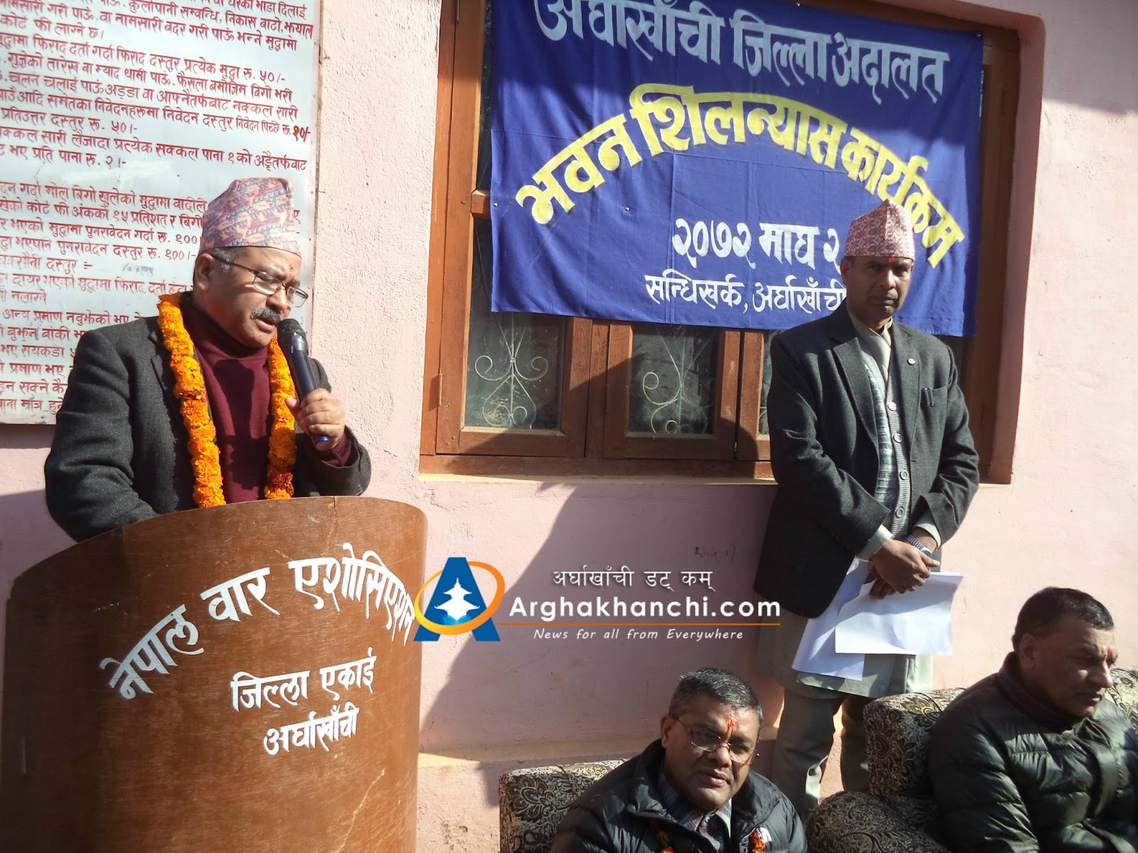 साढे दुई तले भवनको शिलन्याशमा पुनरावेदन अदालत बुटवलका मुख्य न्यायाधीश शारदाप्रसाद घिमिरे सहितको् टोली सहभागी थिए । ०५९ र ०६१ को तत्कालिन माओवादी आक्रमणमा सबै मिसिल जलेर नष्ट भएको श्रेष्तेदार भीमप्रसाद भुसालले बताए । आक्रमणमा अदालतको भवन बाहेक सबै सरकारी कार्यालय ध्वस्त भएका थिए ।