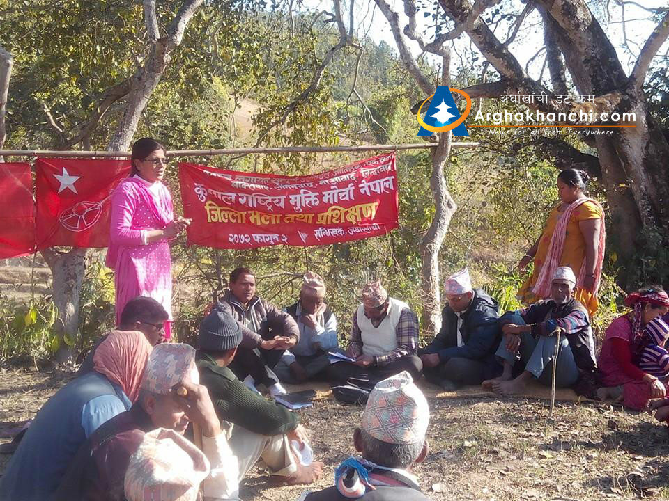 मथुरावेसी, अर्घाखाँची (अर्घाखाँची डट्कम)। एमाओवादी निकट कुमाल राष्ट्रिय मुक्ति माेर्चा नेपाल अर्घाखाँचीकाे जिल्ला भेला तथा प्रशिक्षण कार्यक्रम सन्धिखर्क नगरपालिकाको वाङ्ला मथुरावेसीमा सम्पन्न भएको छ ।
