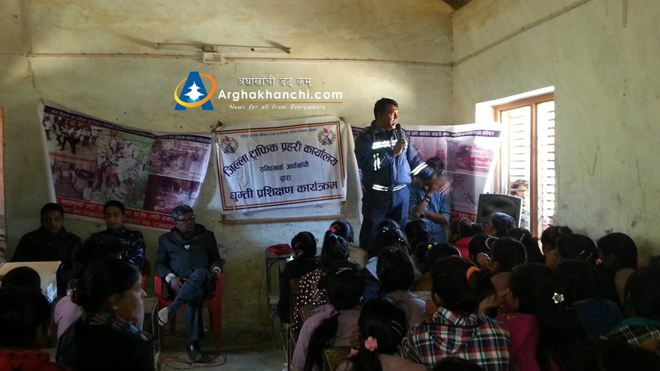 किमडाँडा, अर्घाखाँची । जिल्ला ट्राफिक प्रहरी कार्यालय अर्घाखाँचीको आयोजनामा ‘ट्राफिक प्रहरीको अभियान, हरेक नागरीकमा ट्राफिक नियमको पहिचान’ भन्ने मुल नाराका साथ  किमडाँडामा ट्राफिक नियम पालना सम्बन्धि एक दिने प्रशिक्षण कार्यक्रम सम्पन्न भएको छ ।