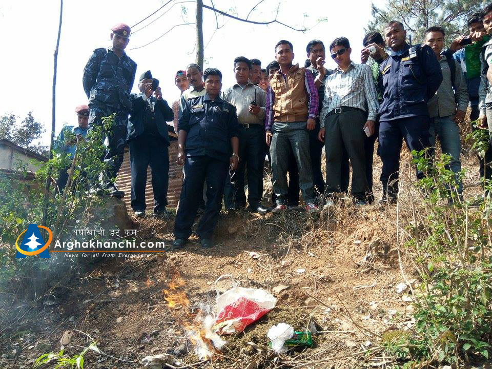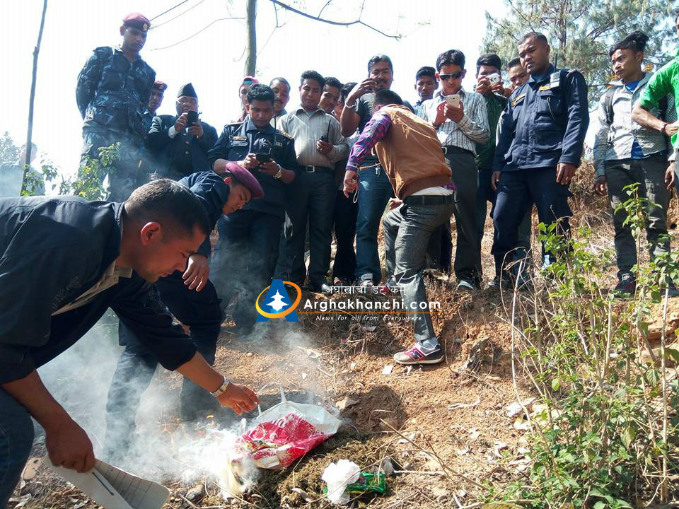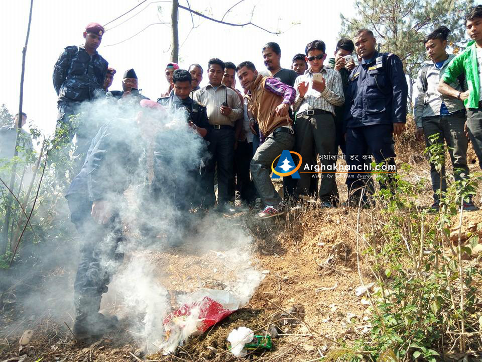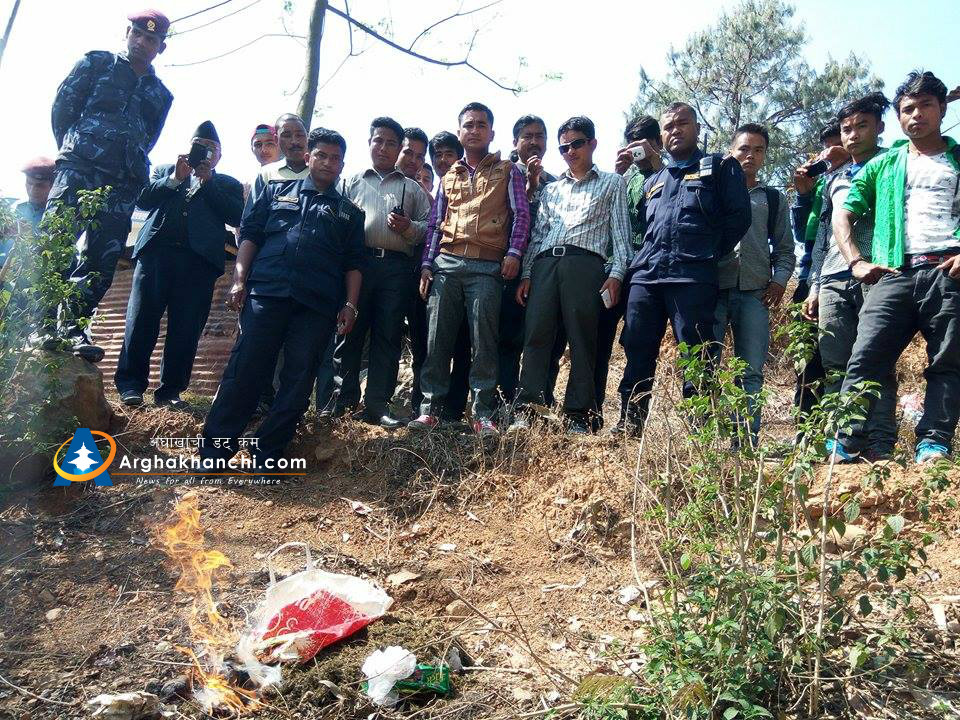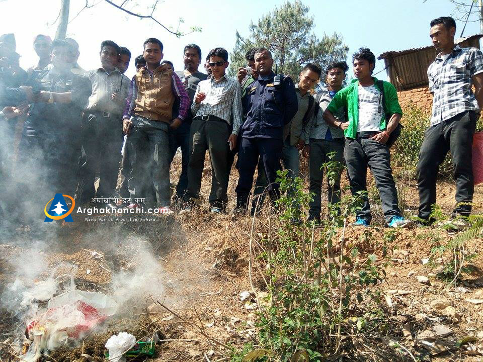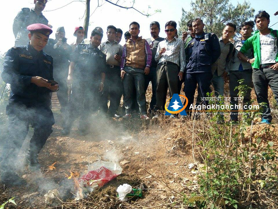 प्रहरी कार्यालय परिसरमा जलाएर नष्ट गरिएको गाँजा सन्धिखर्कको एक होटलबाट बरामद गरेको हो । नष्ट गरिएको गाँजा १ किलो ३०० ग्राम बराबर रहेको छ ।