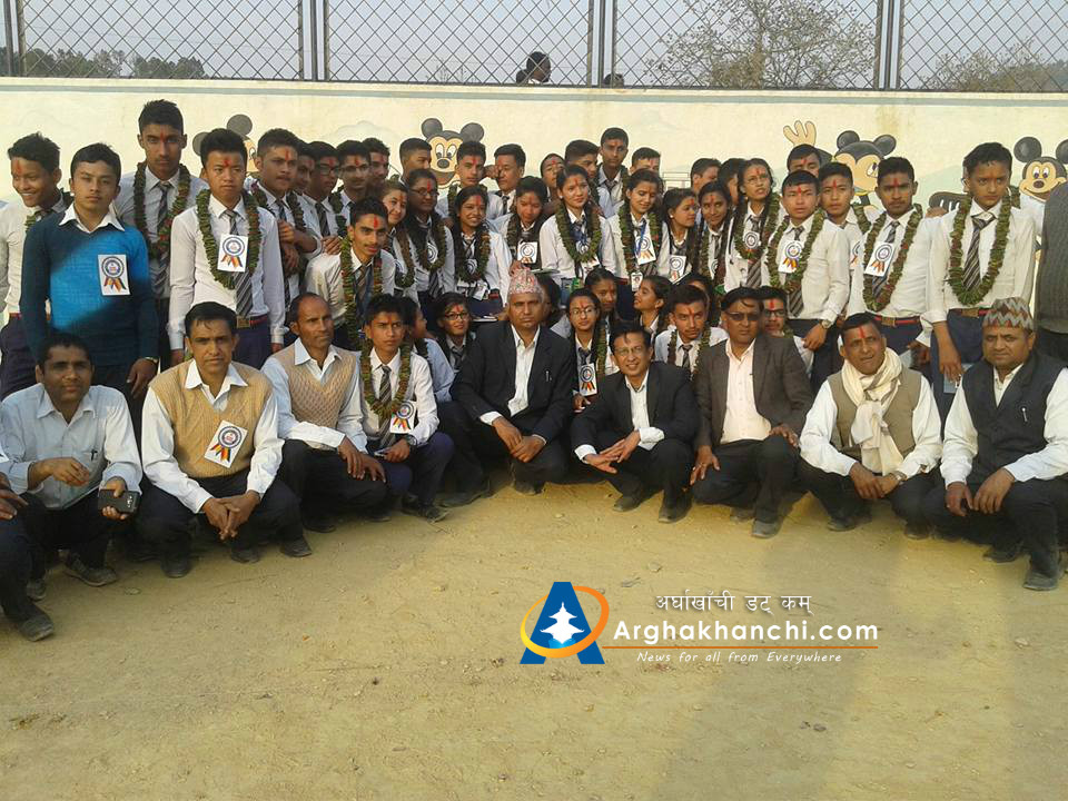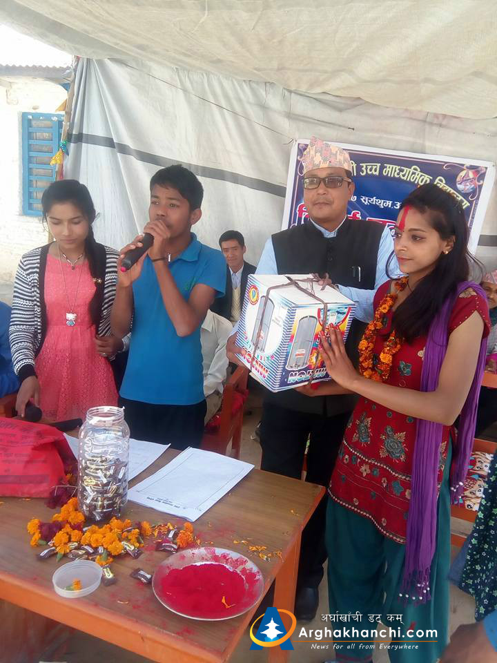 सन्चालन जीवन खनाल, कक्षा ९, स्वागत भाषण आस्मिता भुसल, कक्षा ९, विधाइ मन्तव्य : महेश खनाल,कक्षा ९, धन्न्यवाद मन्तव्य : दिनेश भुसाल कक्षा १०, शुभकामना मन्तव्य  प्रमुख अतिथी चोपलाल बेल्बसे, वि.ब्य.स. अध्यक्ष दुर्गा प्रसाद श्रेष्ठ , प्राचार्य श्रीकृष्ण भुसाल, सहायक प्राचार्य चोपनारायण बन्जाडे, वरिष्ठ शिक्षक इन्द्र बहादुर क्षेत्री लगायत रहेका थिए ।