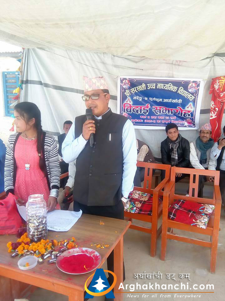 मरेङ, अर्घाखाँची (अर्घाखाँचीडट्कम)। अर्घाखाँची जिल्लाको मरेङ -७ स्थित श्री सरस्वती उमावि सूर्यथुममा विदाई कार्यक्रम सम्पन्न भएको छ ।