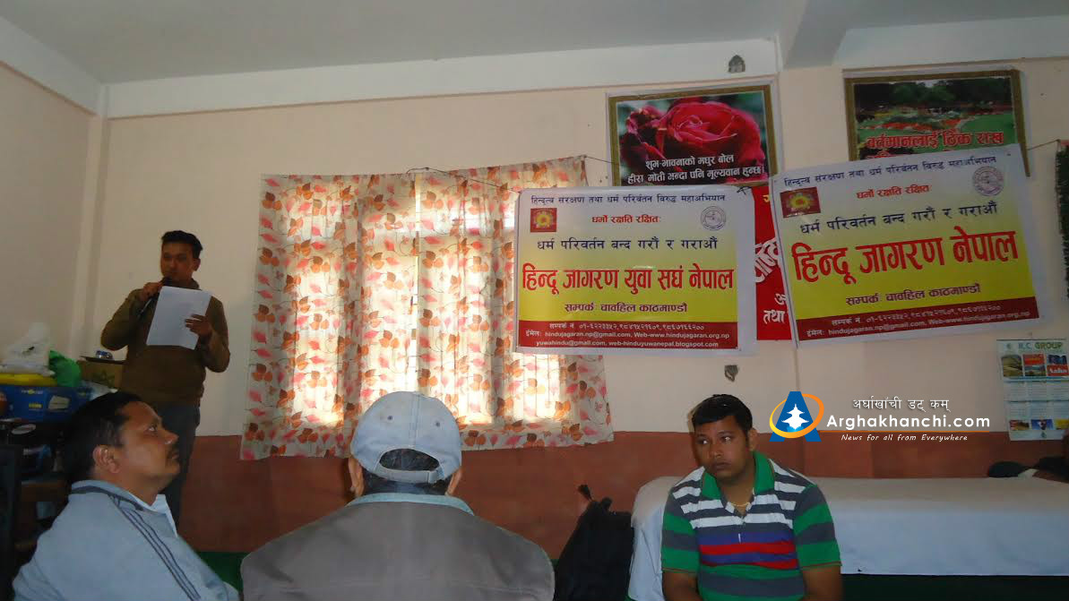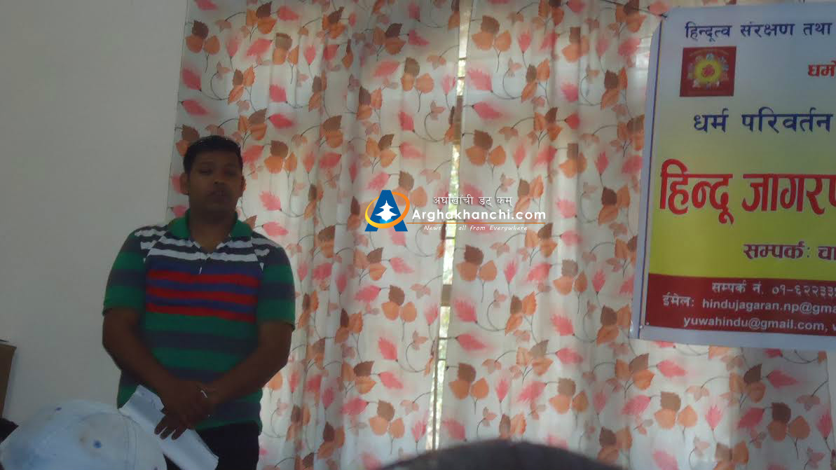 उक्त कार्यक्रममा बोल्दै हिन्दु जागरण युवा संघ नेपाका अधक्ष पदम कुवरले  नेपालमा रहने सबै धर्मावलम्बीहरुले आ आफ्नो रिति रिवाज सस्कृति अनुशार स्वतन्त्र भइ रहन पाउनु पर्ने  तर कुनै पनि धर्मावलम्बीहरुले  अरुलाई बिभिन्न लोभ लालच देखाई धर्म परिवर्तन गराउने  र  धर्मको ब्यापार  गर्न नपाइने कुरामा जोड दिनुभएको  थियो ।