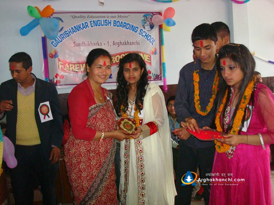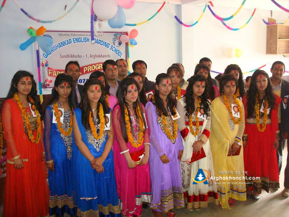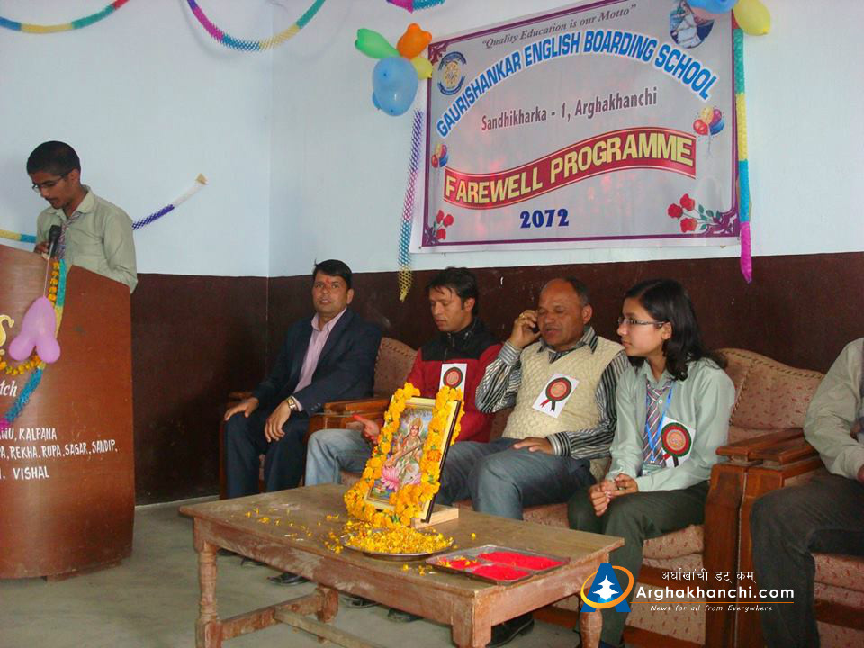 सन्धिखर्क, अर्घाखाँची (अर्घाखाँचीडट्कम)। अर्घाखाँची जिल्लाको सन्धिखर्क स्थित गौरी शंकर इङ्गलिस बोर्डिङ्ग स्कुलमा विदाई कार्यक्रम सम्पन्न भएको छ ।