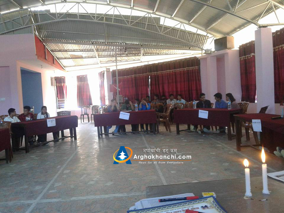 प्रतियोगितामा प्रथम हुनेलाई २ हजार द्वितियलाई १६ सय तृतियलाई १३ सय र प्रमाणपत्र प्रदान गरिएको छ । प्रतियोगितामा सन्धिखर्क नगरपालिका भित्रका उच्च माविले भाग लिएका थिए । प्रतियोतिको एक कार्यक्रमका बीच नेकपा एमालेका जिल्ला कमिटी उपसचिव प्रेमनारायण गैरेले मैनवत्ति प्रज्वलन गरि कार्यक्रमको उद्घाटन गरेका थिए ।