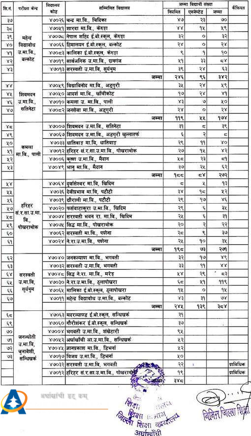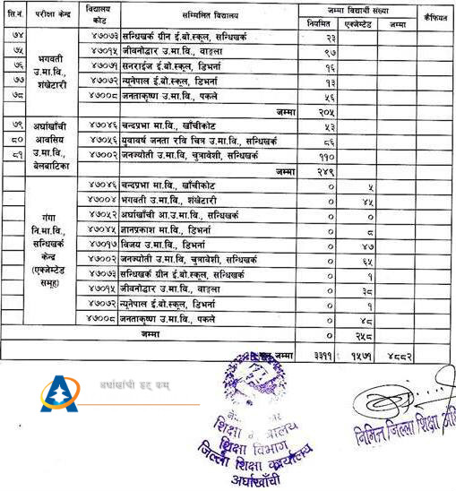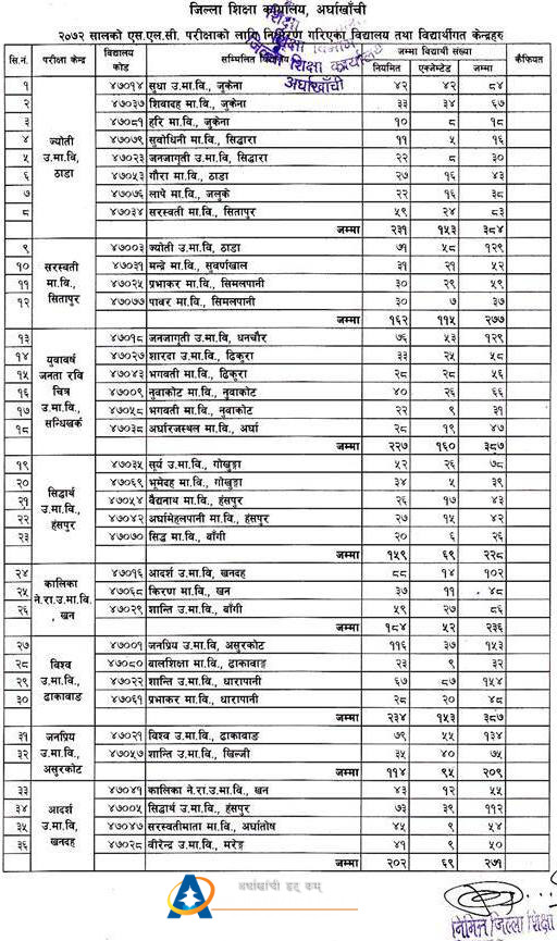 अर्घाखाँची जिल्लामा एस.एल.सी २०७२ का केन्द्रहरू