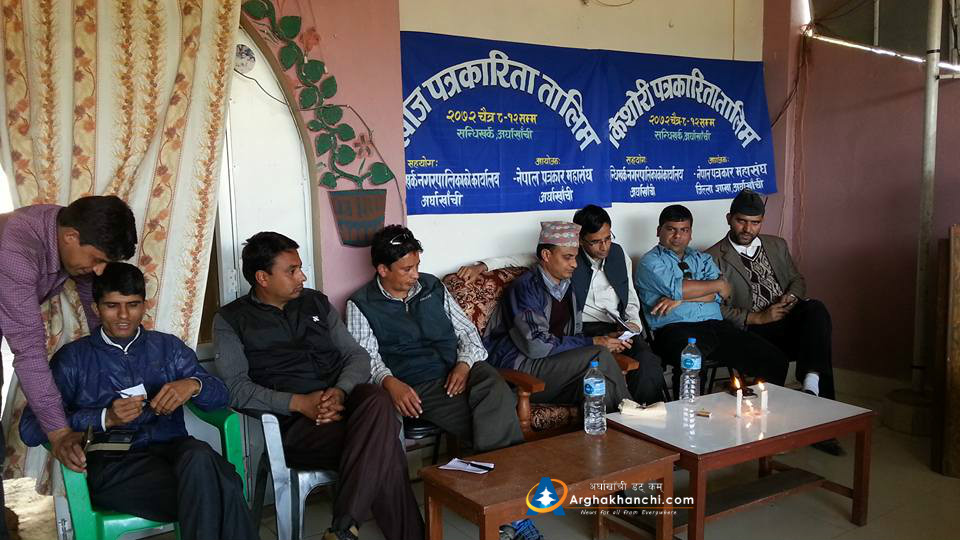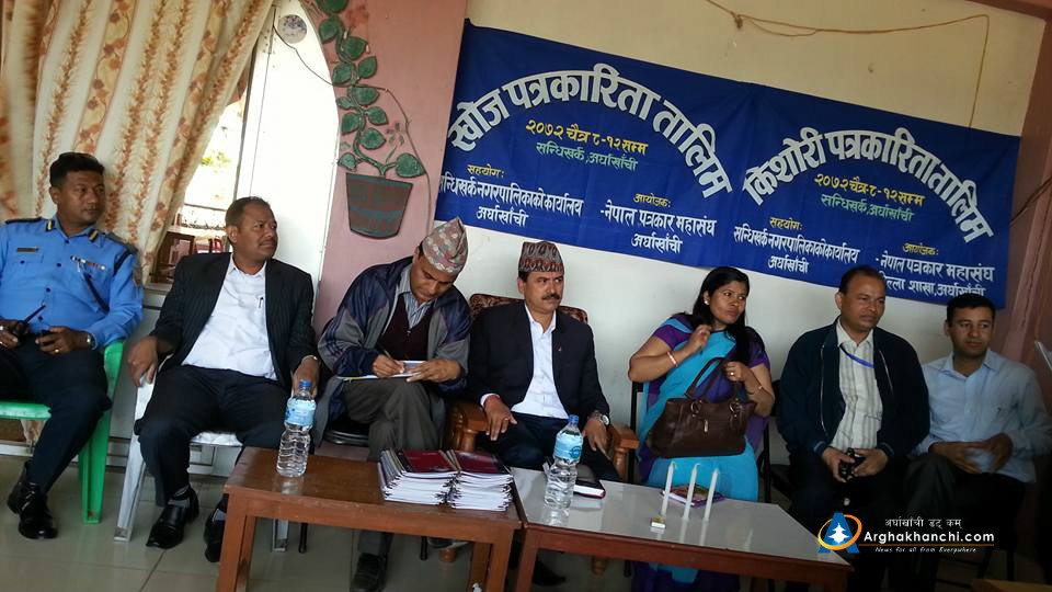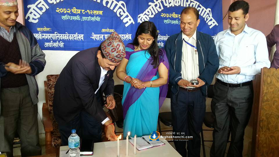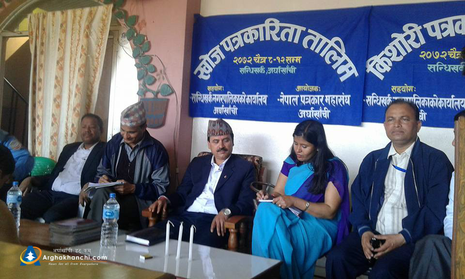 सन्धिखर्क, अर्घाखाँची (अर्घाखाँची डट्कम)। नेपाल पत्रकार माहासघ अर्घाखाँचीको अायोजनामा खोज पत्रकारिता तथा किसोरी पत्रकारिता तालिम सन्धिखर्कमा शुरु भएको छ ।