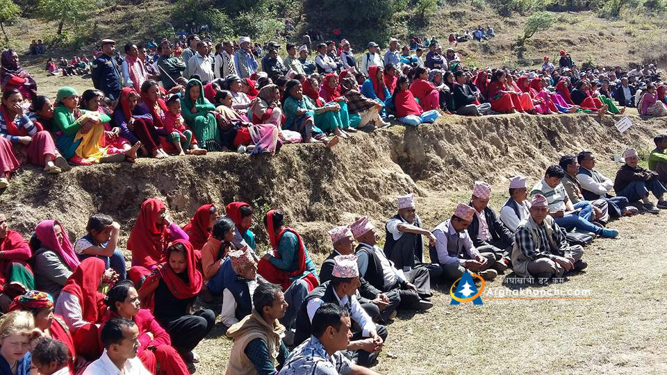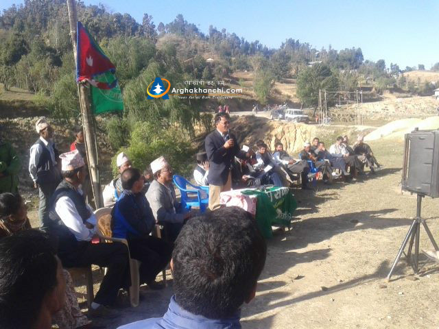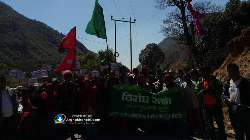विरोध सभालाई नेपाली काङ्ग्रेसका जिल्ला सभापति बिष्णु मुस्कान, नेकपा एमाले अर्घाखाँचीका कार्यबाहक अध्यक्ष जिब नारायण काेइराला, राष्ट्रिय जनमोर्चाका सागर के.सी र शेर बहादुर विसी, विप्लब माअाेबादीका सुमन ज्ञवाली सम्बोधन गरेका थिए ।